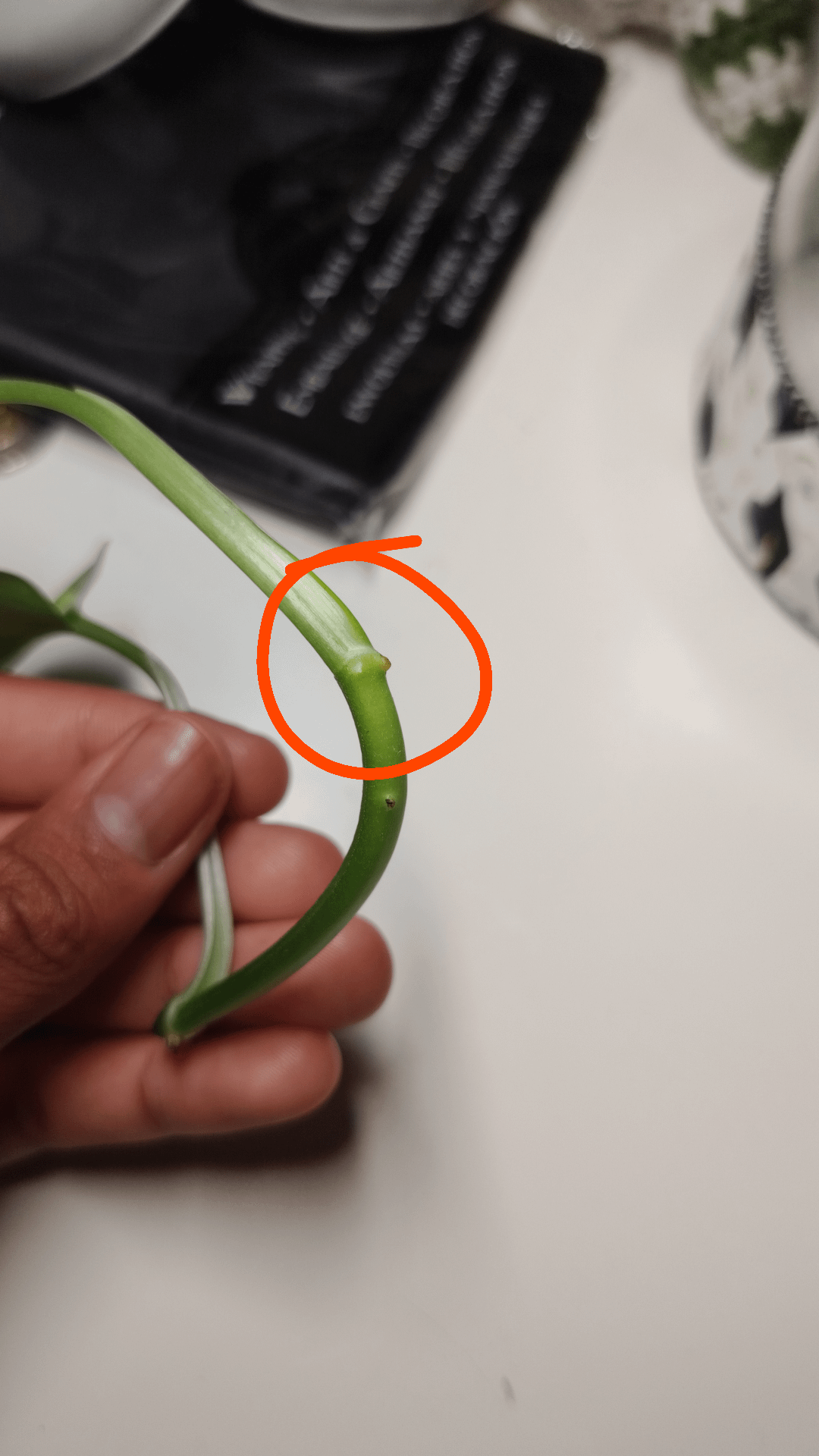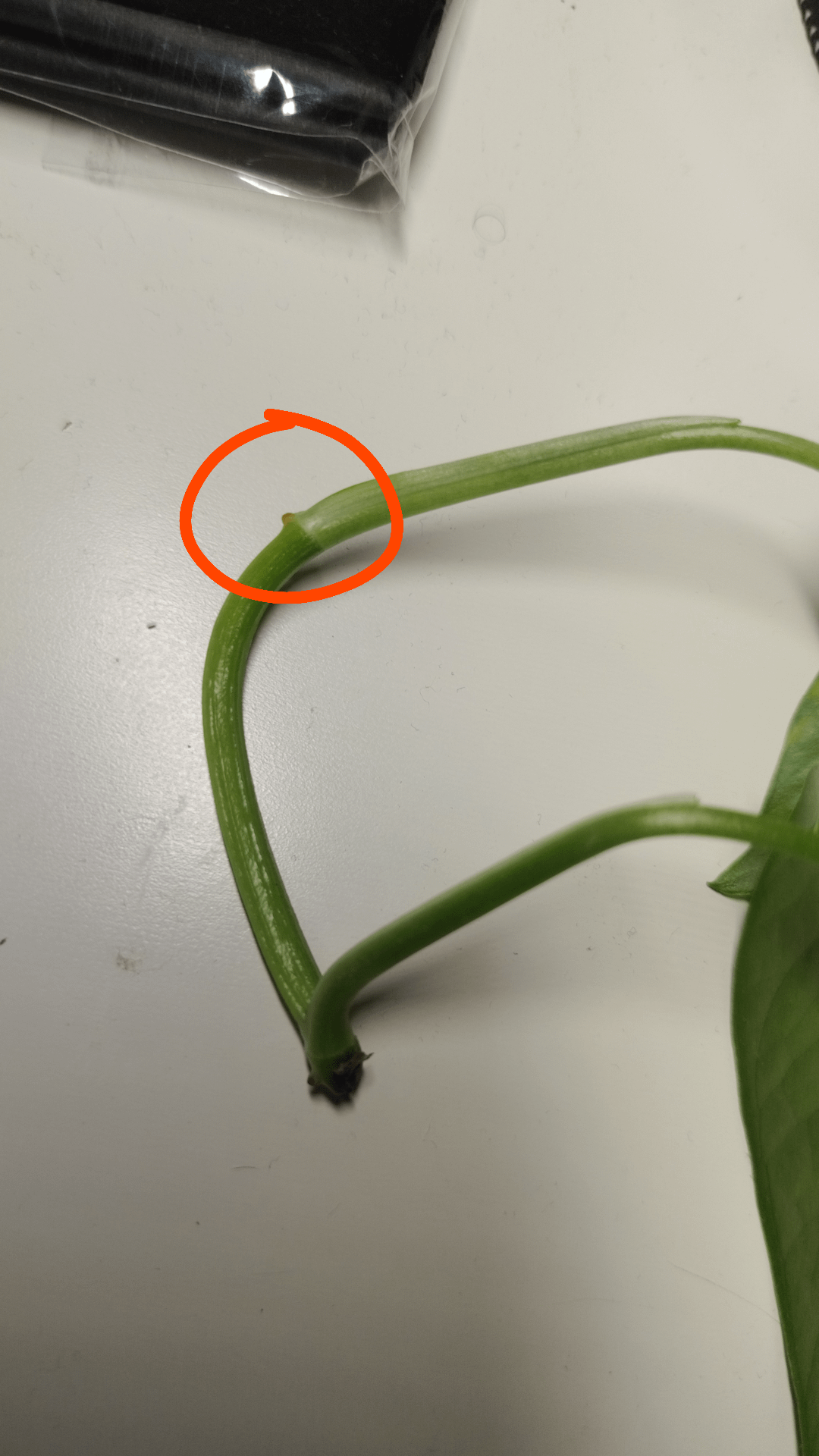 Dies ist ein Schnitt aus der Pflanze meiner Mutter und ich frage mich, ob der eingekreiste Teil ein Knoten ist und auch abgeschnitten werden sollte.