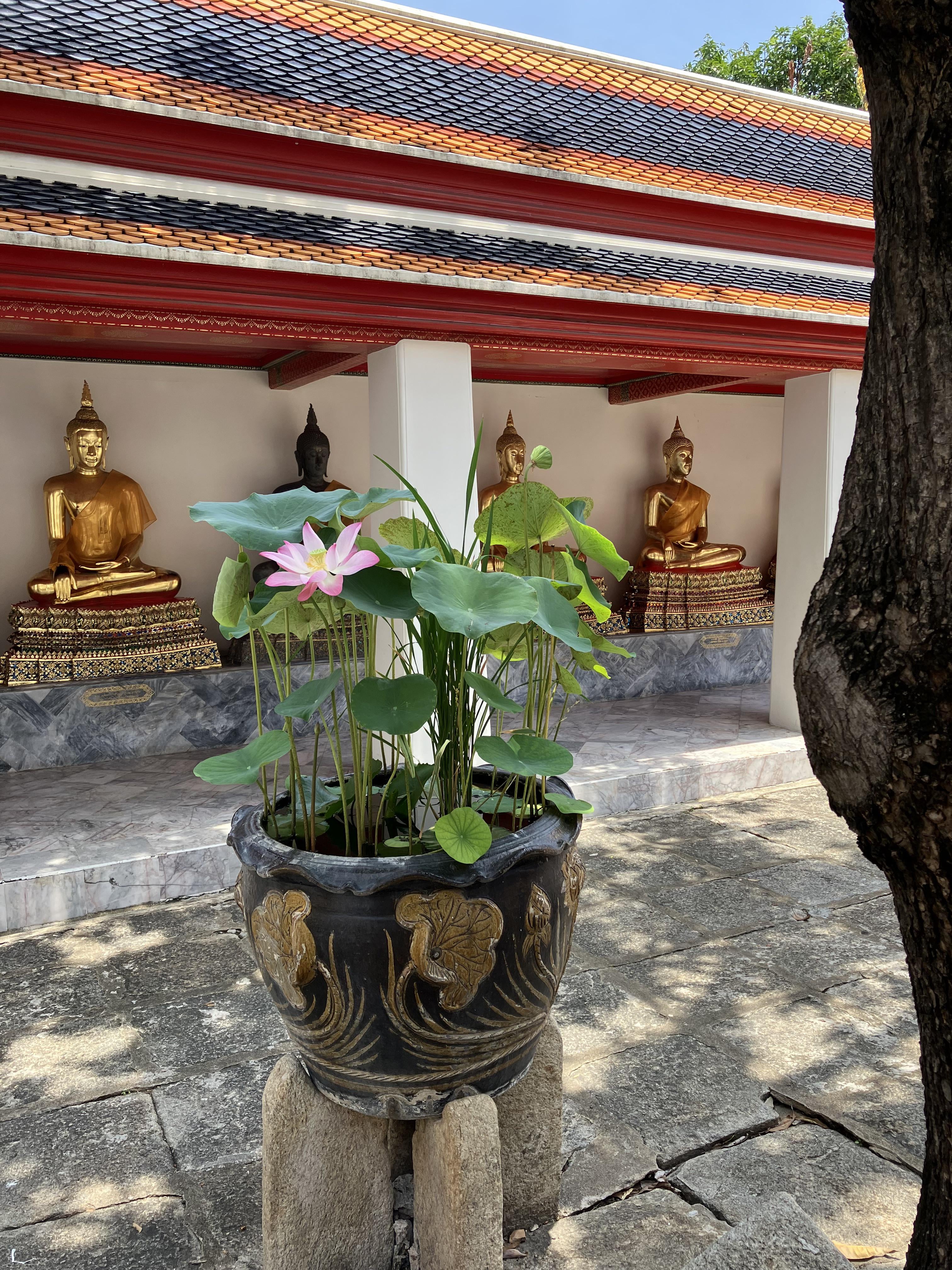 In Thailand, in den Tempeln und vor vielen Häusern auf der Straße gibt es überall Mini -Wassergärten mit Lotus, Wasser -geboren und verschiedene Wasserpflanzen sowie kleine Fische, oft Guppy.