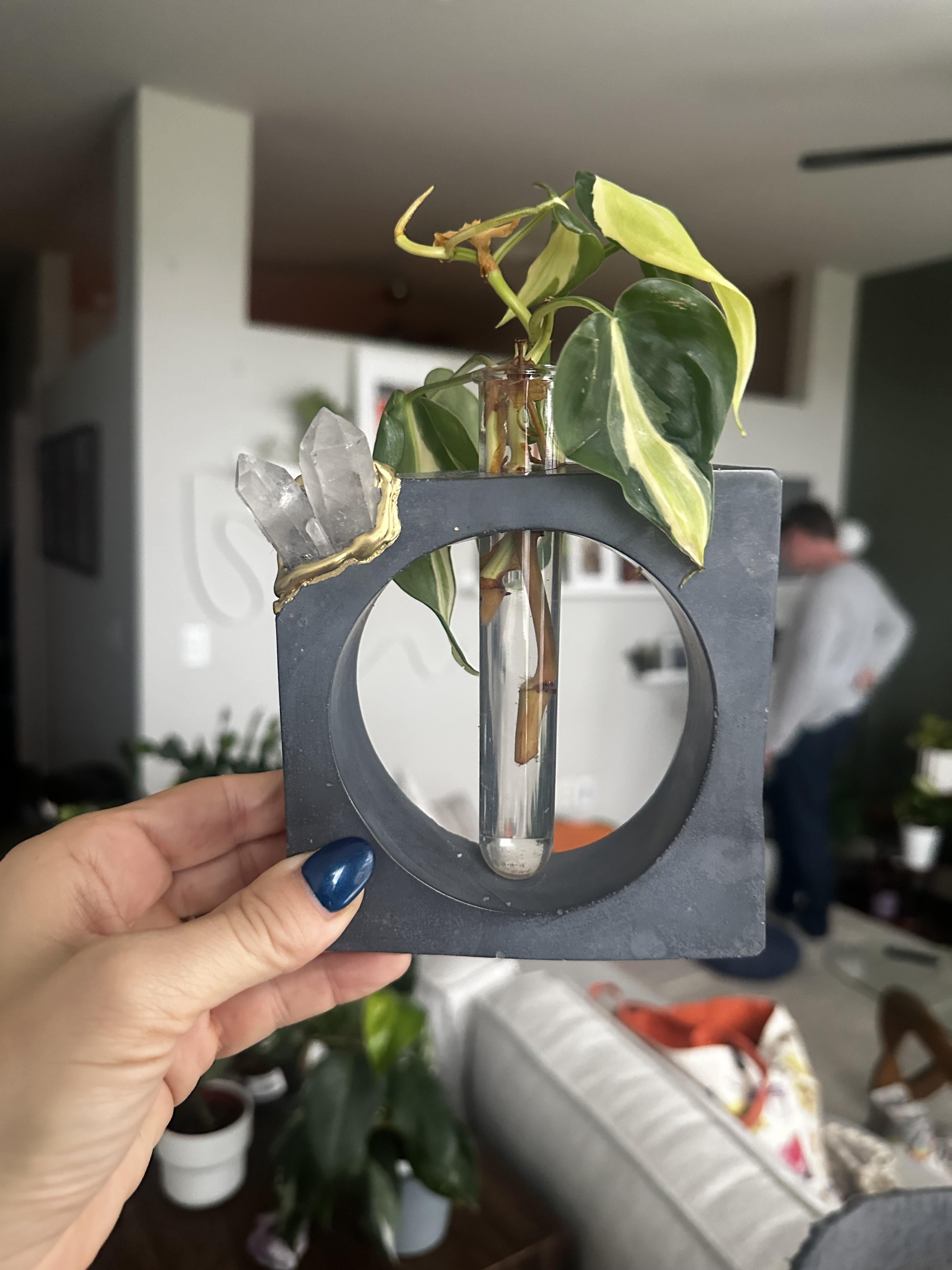 Ich habe diese handgefertigte Beton + Kristall -Prop -Vase (mit Prop) auf dem Artisan -Markt von Denver für 30 US -Dollar erhalten. Von: MichaelaMancini