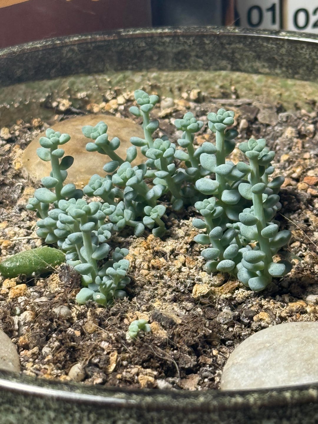 Wie es anfing, wie es läuft. Es ist ein Jahr her, seit ich diese auf dem Bürgersteig gefunden habe und es versucht habe. Irgendwelche Ratschläge? Ich gieße vielleicht einmal im Monat. Lebt etwa 10 Zoll unter einem wachsenden Licht, das sich 12 Stunden am Tag befindet.