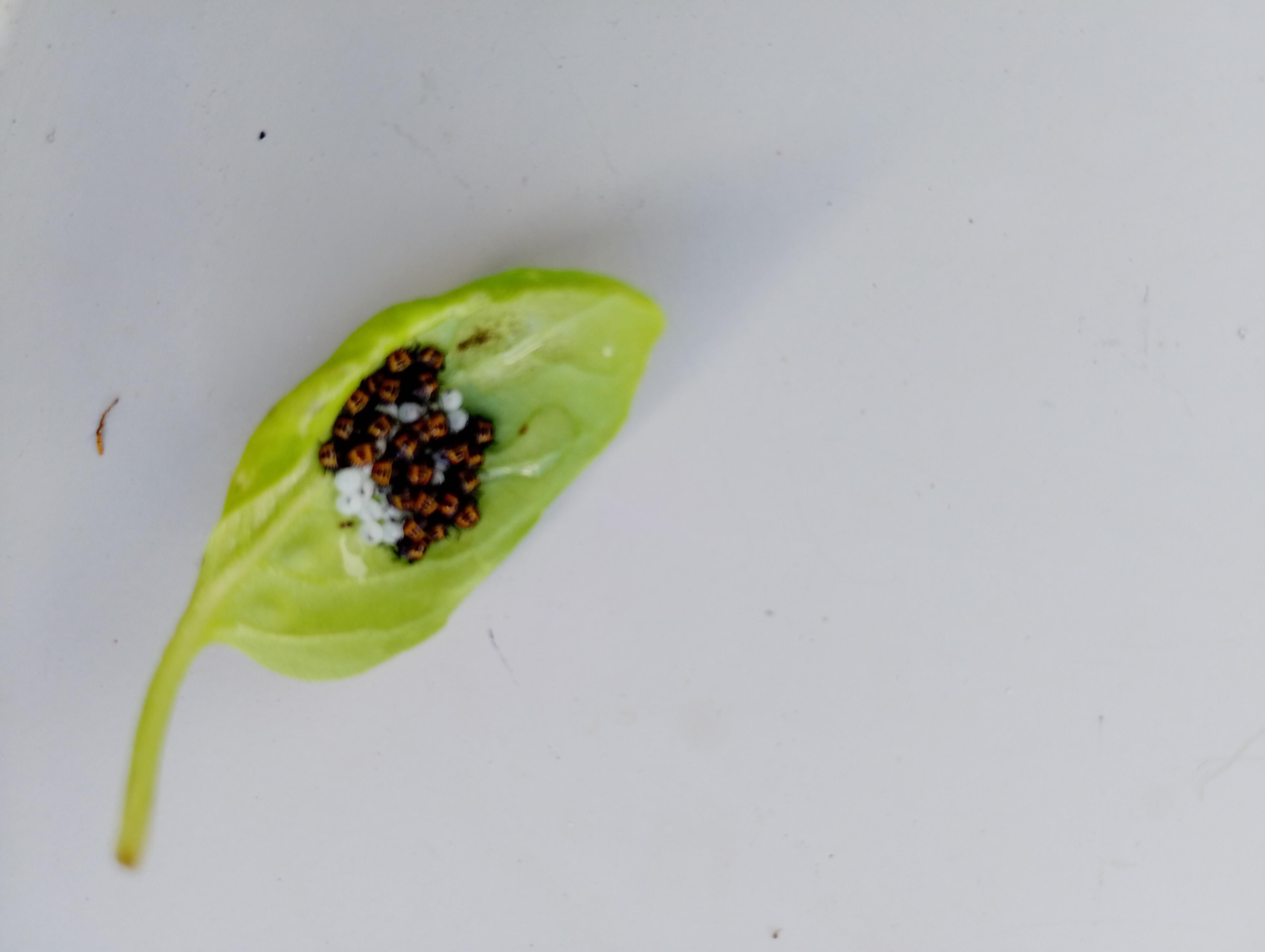 Hallo, ich habe gerade diese Insekten unter einem Basilikumblatt kaum aus ihren Eiern gefunden. Würde jemand wissen, worum es geht? Danke und einen schönen Tag 🙂 Von: JeanBoultout