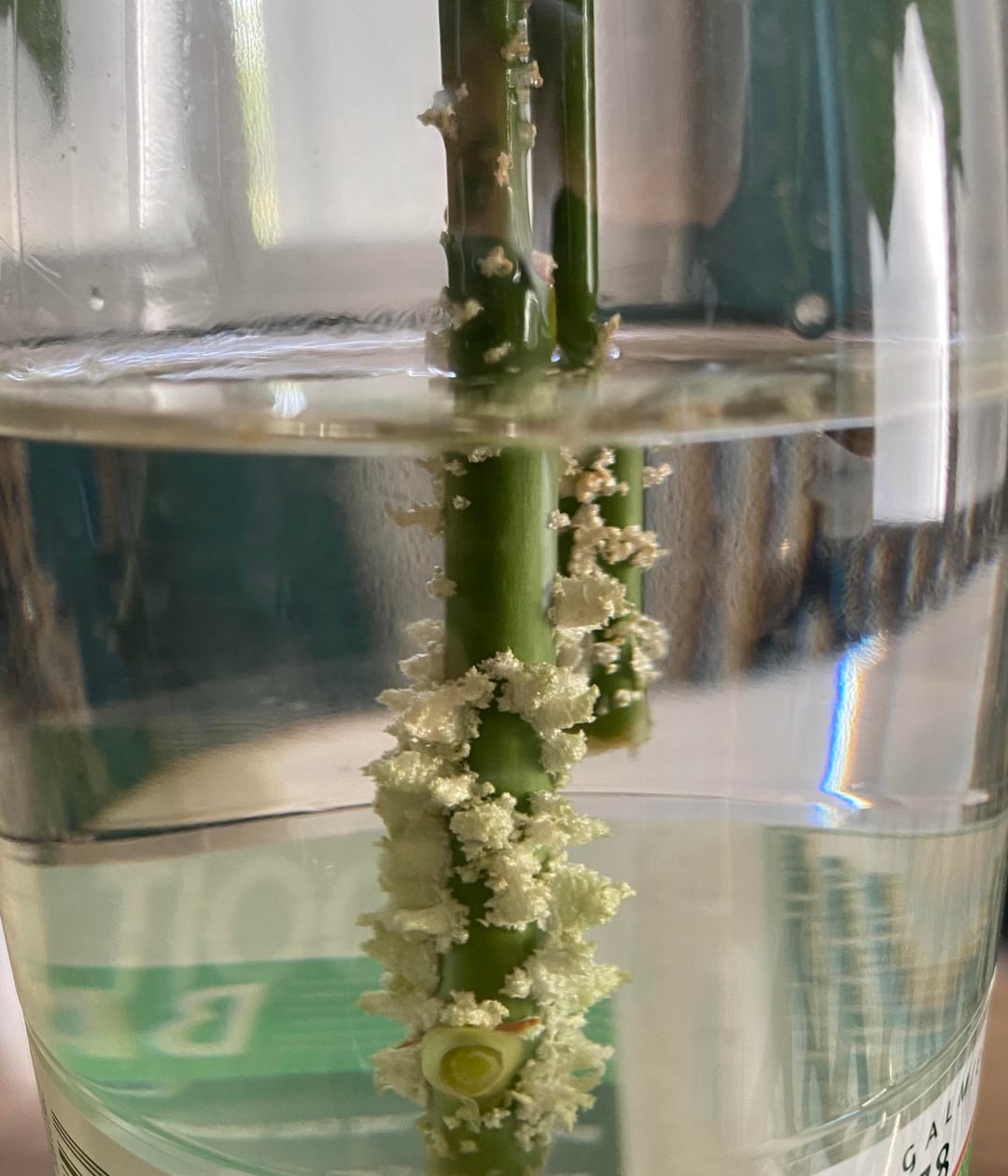 Hallo allerseits, ich habe diese beiden Pachira -Stecklinge vor 3 Wochen gestellt. Die weißen Wurzeln, die auf dem Foto sichtbar sind, sind erschienen und sind seit 15 Tagen gewachsen. Was denkst du, sollte ich sie in den Boden legen? DANKE 🙂