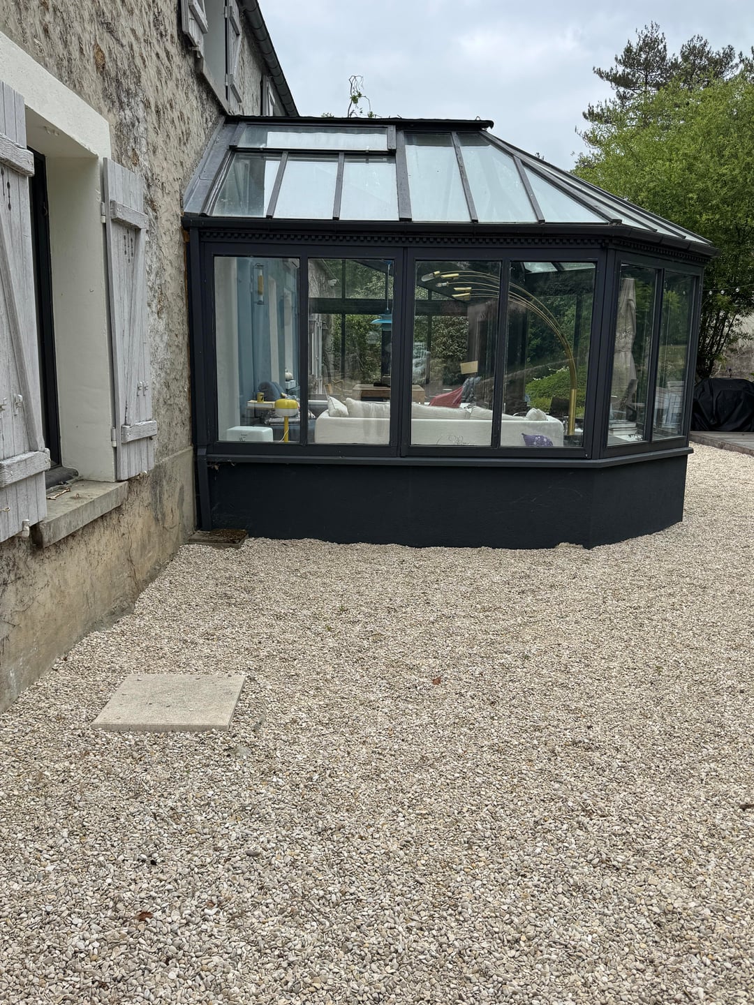 Wir dachten an große Töpfe auf jeder Seite (Haus und niedrige Wand), um die Steine von Steinen visuell zu reduzieren. Wir denken auch daran, Massive zu erstellen, aber es wird viel Arbeit und Wartung erfordern.