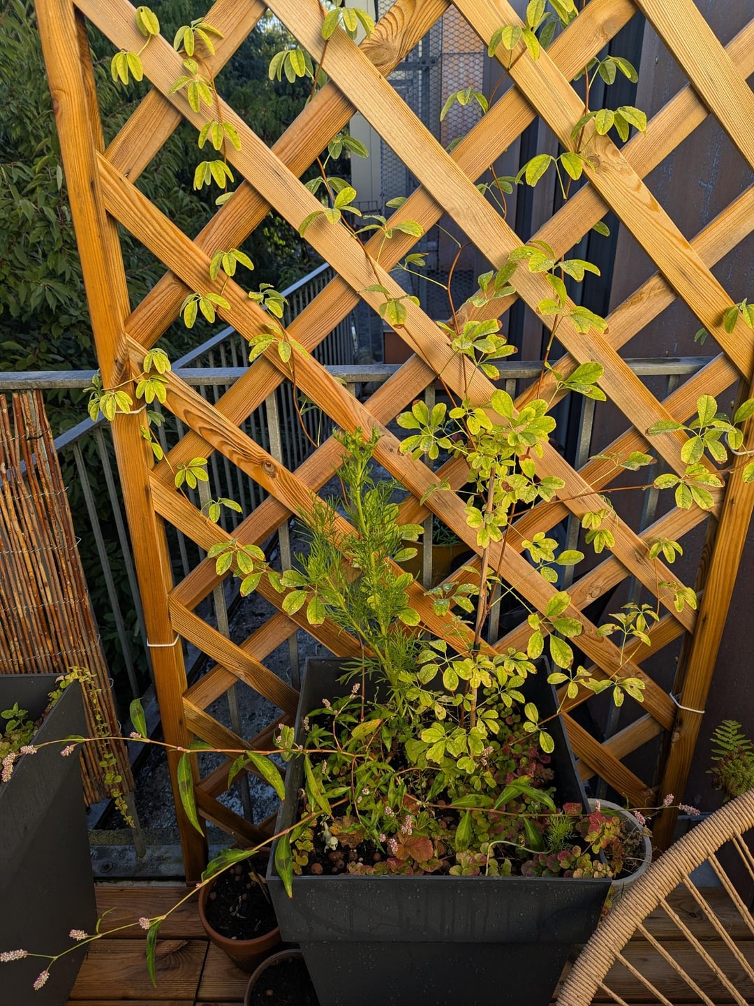 Hallo, ich habe im Frühjahr einen Akebia quinata und einen Stern der Toskana (die Blätter im Herbst erröten) gepflanzt. Die Töpfe sind 50 cm, 5-6 cm Lehmkugel im Boden und ich habe die Entwässerungslöcher durchbohrt. Ich mischte einfachen universellen Boden mit Tonkugeln und brachte diesen Sommer einmal pro Woche ein wenig flüssiges Dünger in das Bewässern. Ich bin im Norden, mein Balkon ist im Osten ausgesetzt, es ist morgens und am Ende des Nachmittags sonnig. Ich denke, die Akébia entwickelt Chlorose (sehr Kalkstein -Leitungswasser). Ich dachte darüber nach, eine kleine Kiefernrinde hinzuzufügen, um die Erde zu säuern. Ich fürchte, sie werden diesen Herbst den Regen zu stark nehmen. Ich dachte darüber nach, den Boden Perlit hinzuzufügen und eine Schicht Lumbri -Mesters zu setzen, um ihn zu bereichern und aufzuhellen. Muss ich diesen Winter auch einen Überwinterungsschleier um die Töpfe stellen? Ich möchte Ihren Rat haben 🙂 Danke!