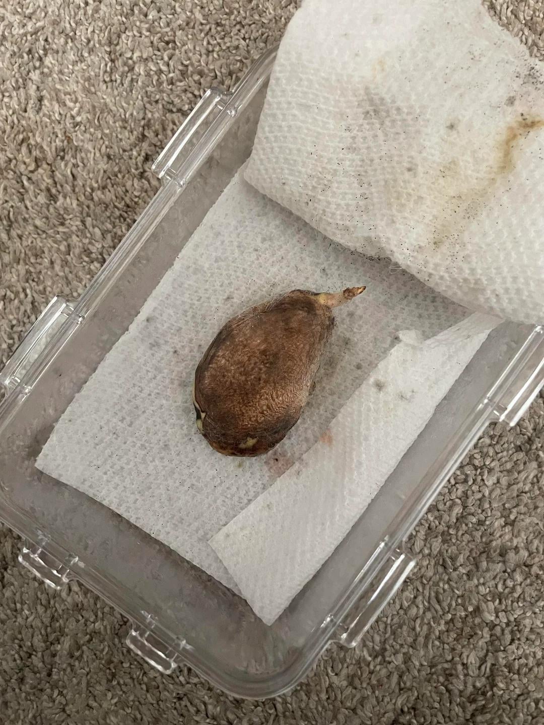 Ich beschloss, einen Mangosamen aus einer Mango anzubauen, die ich hatte, es ist seit ein paar Wochen in diesem Behälter mit einem feuchten Papiertuch. Sieht es so aus, als ob es in Ordnung ist, wenn ja, wann bewege ich es in den Boden? Was ist eine gute Bodenmischung