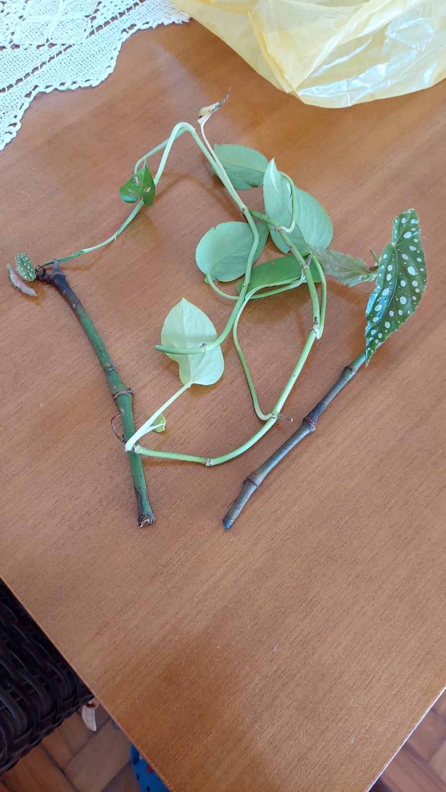 2 Begonias, ein Mini -Monstera und einige limische Pothos