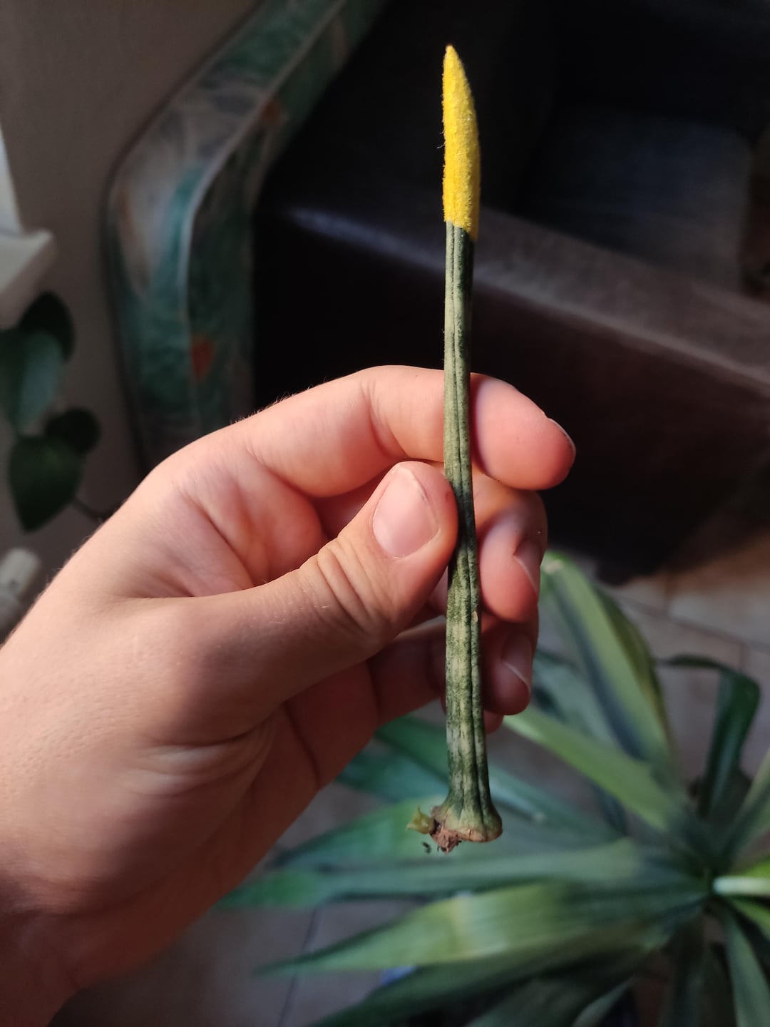 Assuming the yellow part was some kind of decorative? Congrats on the pup! I have a similar one that I saved from the mother pot of succulents, I never knew what plant is that 😅