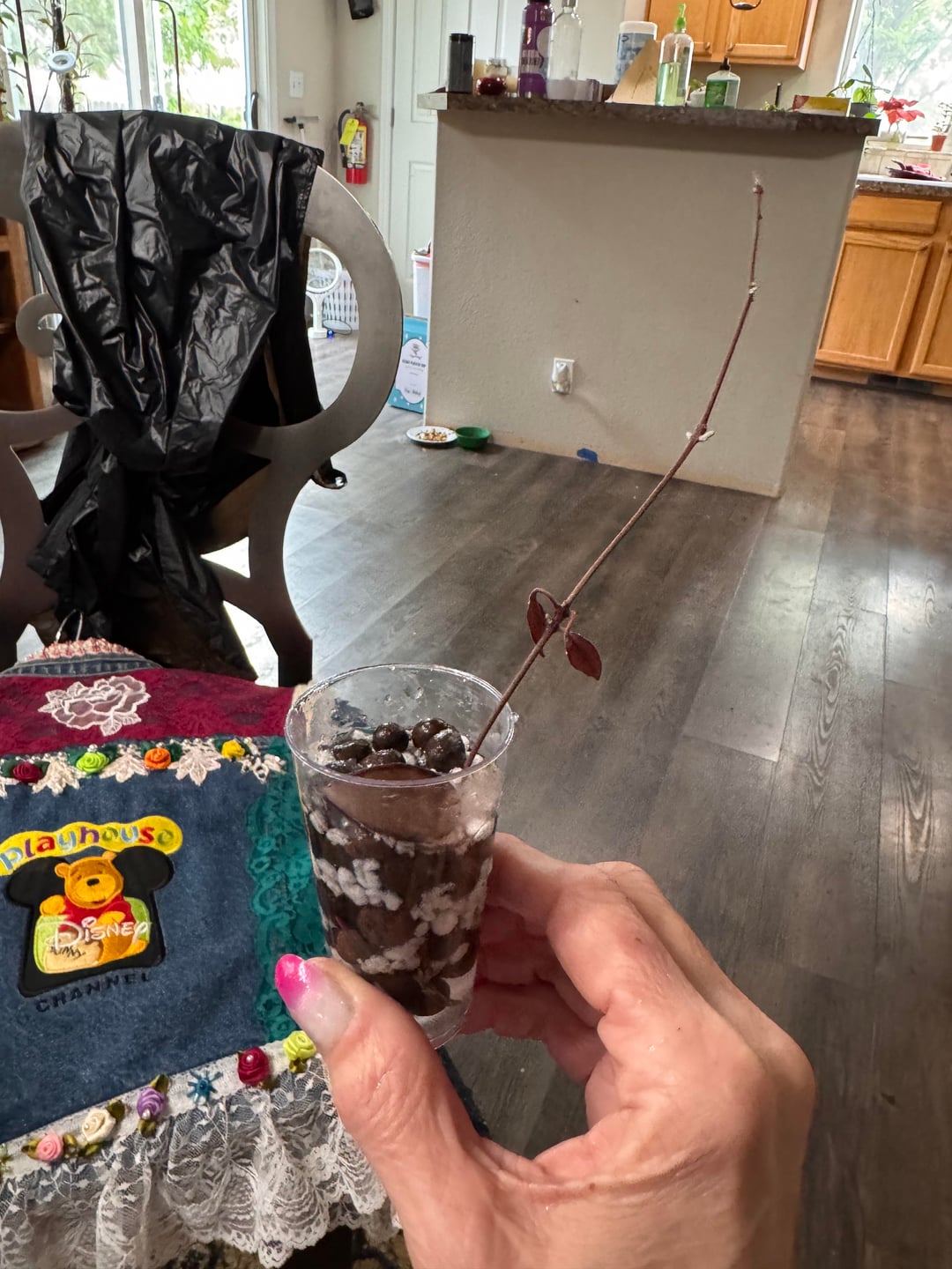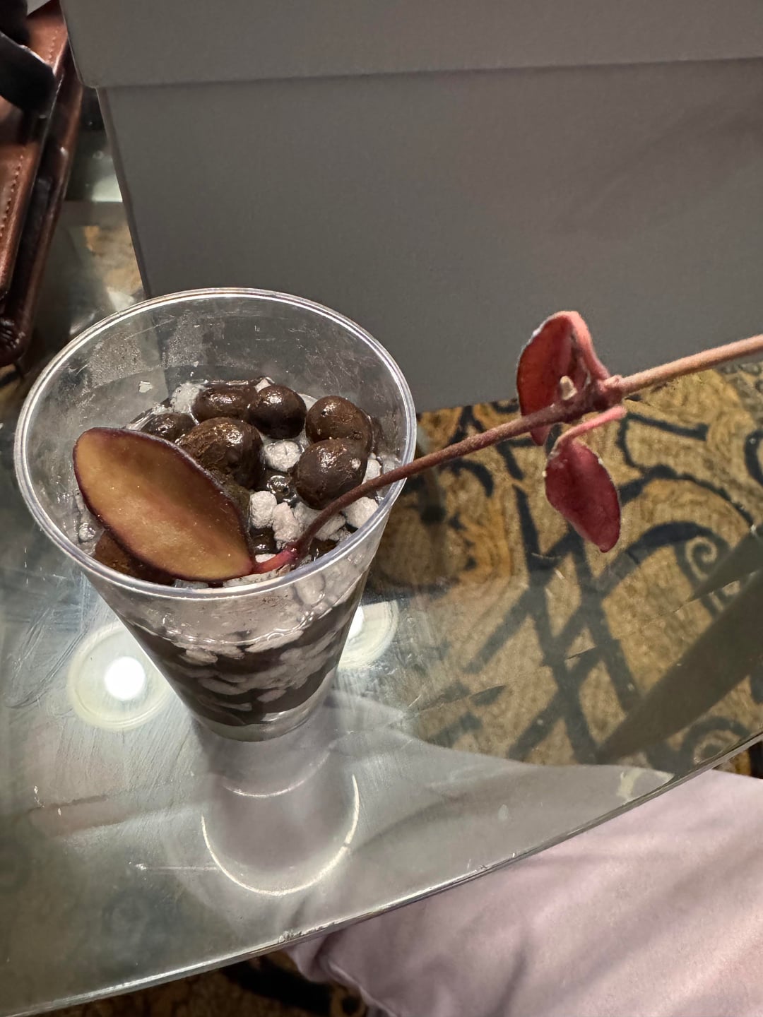 Ich war in einem großen örtlichen Farmgeschäft in meiner Nähe und sah einen Hoya, den ich vorher noch nicht gesehen hatte. Ich nahm es auf, um es mir anzusehen, und eine lange Rebe brach. Jemand hatte eine sehr schwere Pflanze auf den Läufer gesetzt. Ich ging zu der Frau, die diese Gegend lief, zeigte ihr, was passiert ist, und fragte, ob ich das zerbrochene Stück haben könne? Ich hatte 2 andere Pflanzen in meinem Karren plus Boden, Perlite, Leca und meinen Hund. Sie lächelte und sagte: “Natürlich wäre es nur dort allein und durstig gestorben. Happy Reha.” Dann brachte sie mich an einen anderen Tisch und sagte, dass dies im Grunde genommen alle in den Rabatttisch gingen, also haben Sie meine Wahl.