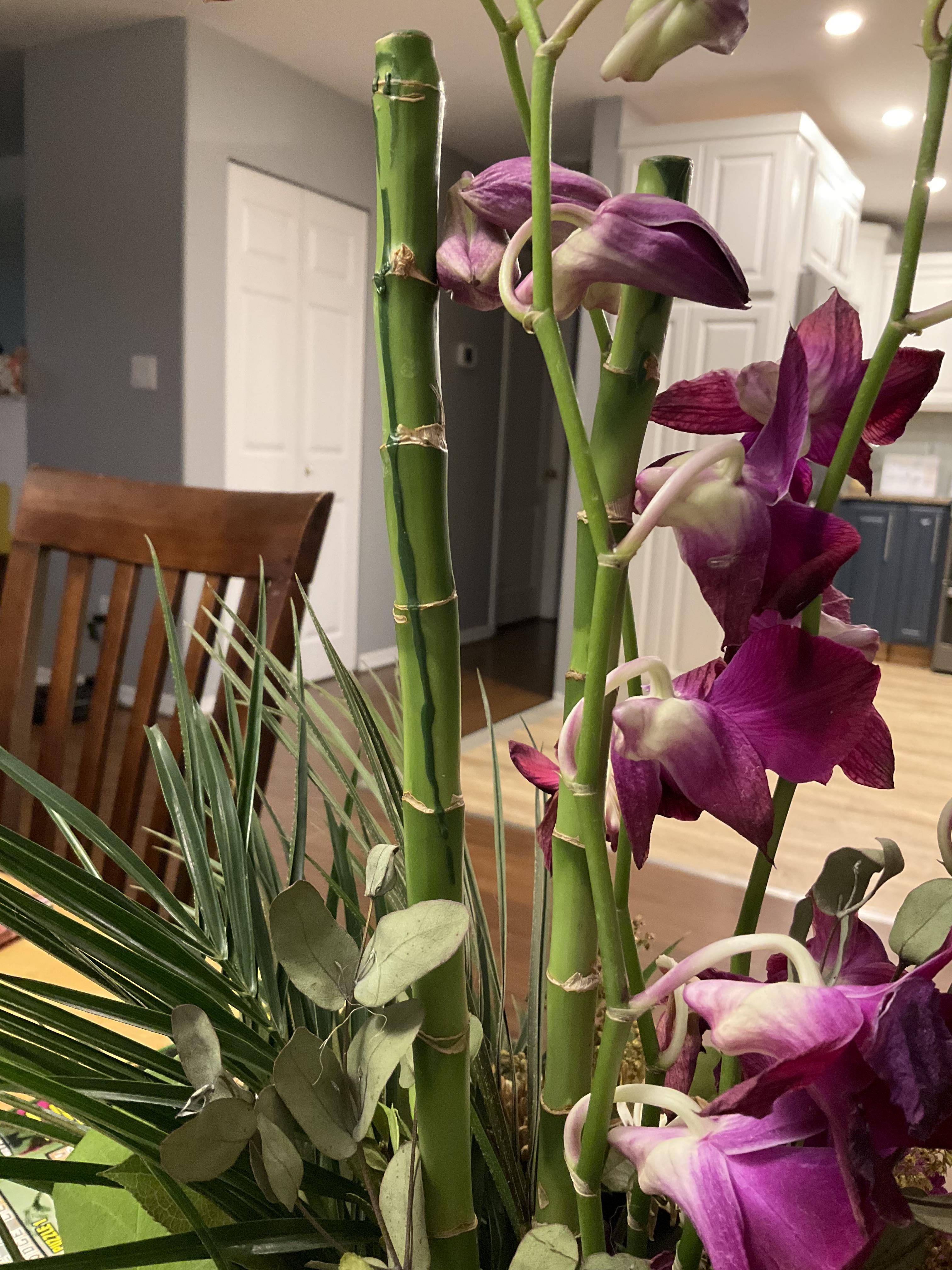Ich möchte einen Teil davon als Zimmerpflanze behalten. Ich kann mir vorstellen, dass der Bambus wahrscheinlich das einfachste Stück sein würde, mit dem die Orchideen, Chrysanthemen und Nelken Blumen geschnitten sind, aber mit Wachs versiegelt und in einem Winkel im Blumenschaum abgeschnitten sind. Ist es sogar machbar, diesen Bambus in dem Zustand zu stützen?