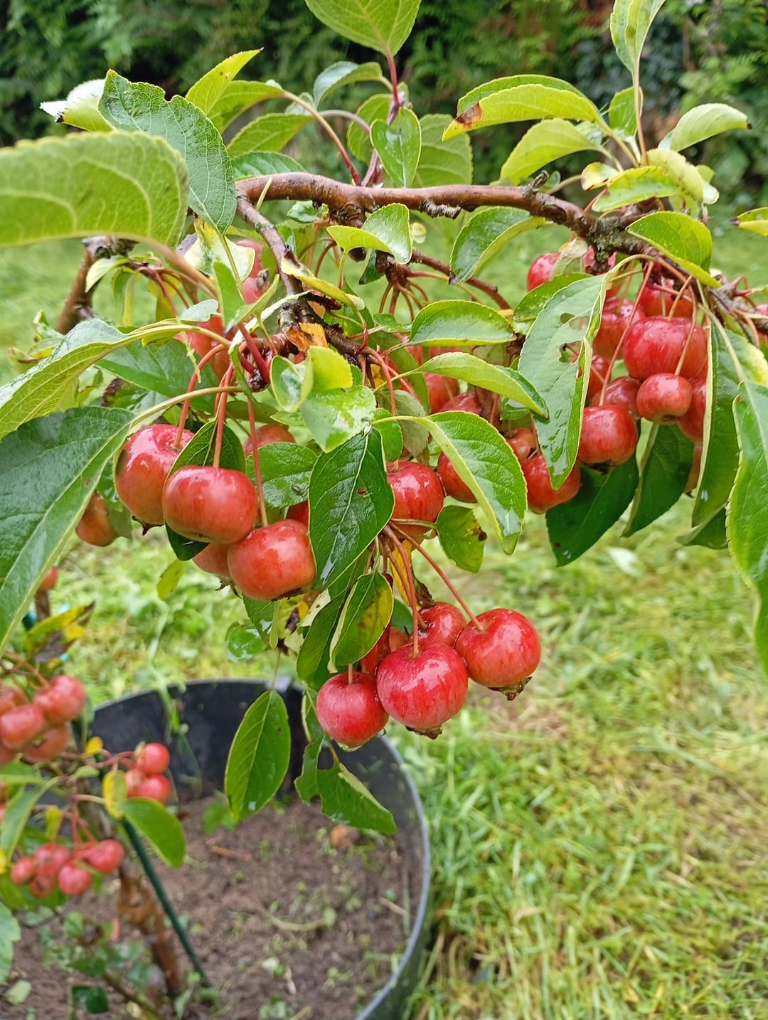 Ca ressemble a des pommes sauvages, ou crab-apple en Anglais. Elles sont tres acides si je me souviens bien, mais comestibles.