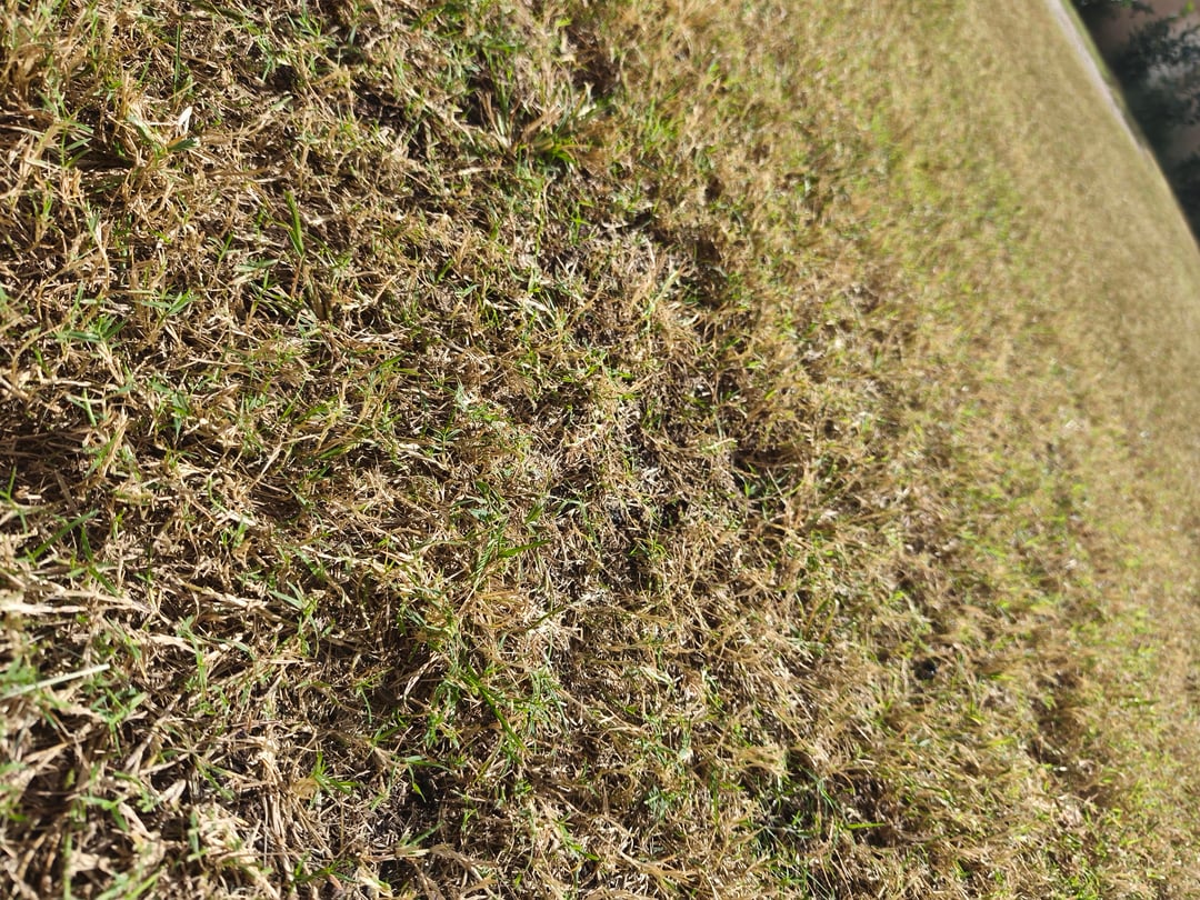 Pendant cette dormance, l’herbe retire l’humidité de ses feuilles pour la concentrer dans les racines. C’est différent d’une pelouse malade : une herbe malade devient grise, blanchâtre et tombe presque en poussière. Là, ta pelouse a juste une texture un peu sèche, mais elle est vivante et va reprendre dès que les conditions seront meilleures. Tu pourras éventuellement semer par-dessus les trous, mais ce n’est vraiment pas une catastrophe loin de là.