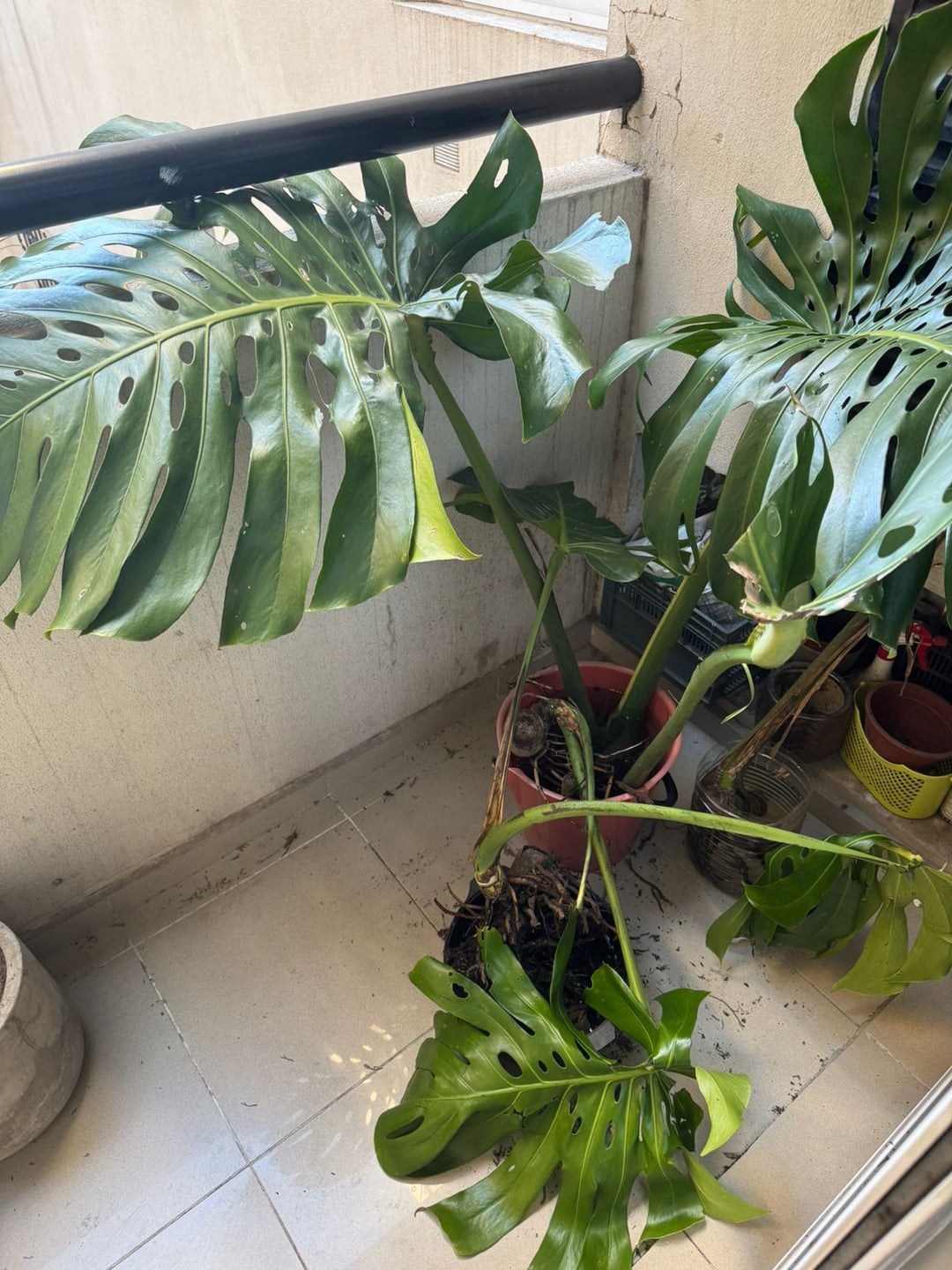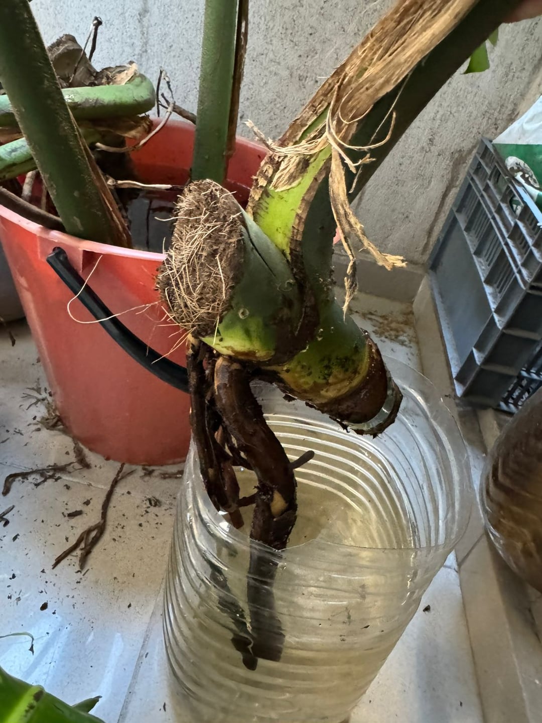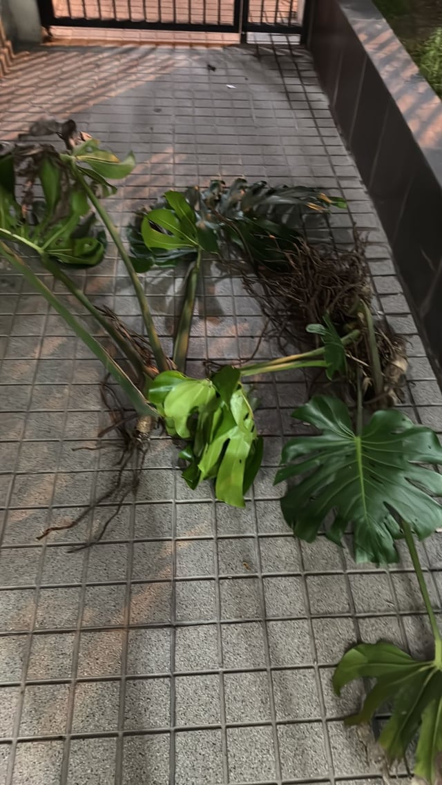 Als ich letzte Nacht nach Hause ging, wurde ein Haus in der Nähe zusammen mit anderen Pflanzen, einem riesigen Monstera, das in seinem Garten stand, in Stücke gerissen. Ich habe es letzte Nacht geschafft, diese vier Stammstücke zu retten, und mein erster Gedanke war, sie ins Wasser zu legen. Die Stängel sind in Ordnung, aber einige Blätter sind teilweise gebrochen. Die Stämme sind alle voller Luftwurzeln.