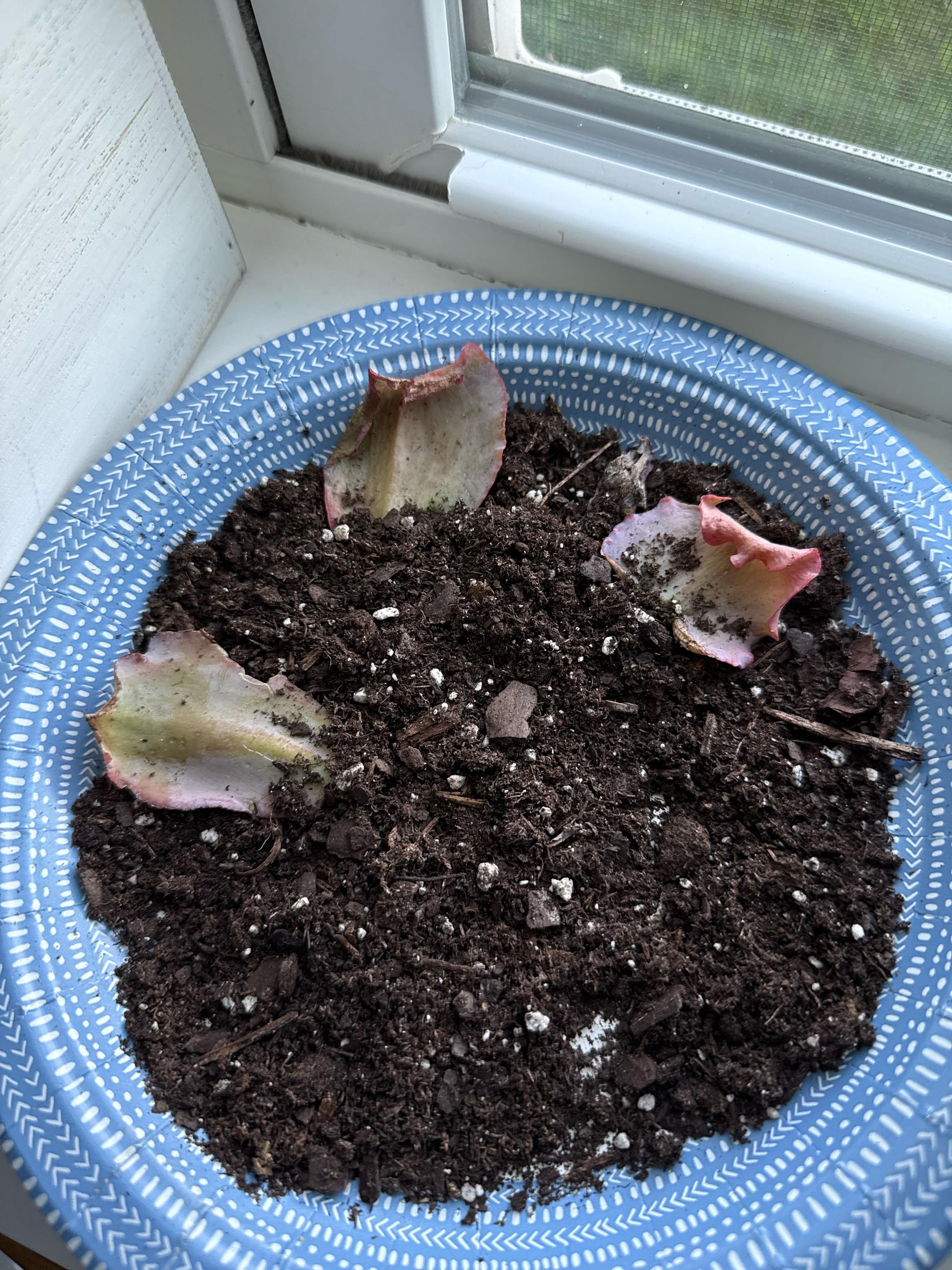 Deshalb habe ich mich nicht besonders gut um sie gekümmert. Ich weiß nicht, was ich tun soll, und ich brauche Hilfe. Wenn also jemand einen Einblick hat, lassen Sie es mich wissen. Ich höre alle sagen, wie einfach es war, und ich habe sie einfach in etwas Erde gesteckt und dann versucht, sie zu besprühen und dann habe ich versucht, sie leicht zu wässern.