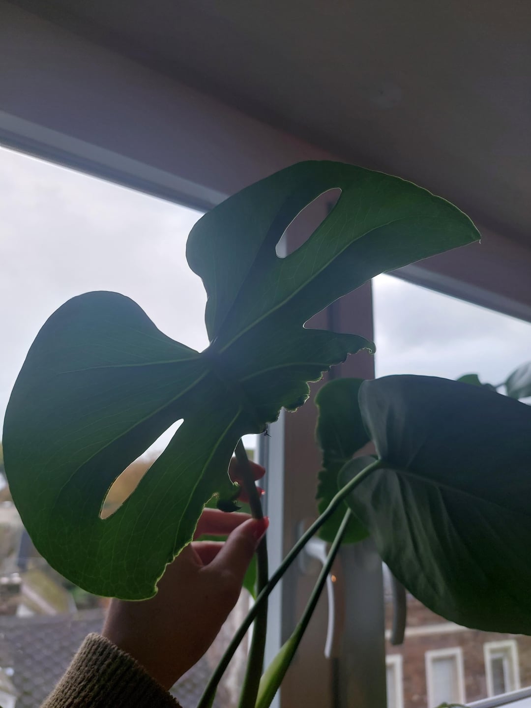 meine Monstera deliciosa hat jetzt zum zweiten Mal ein ziemlich "komisches" Blatt geschoben. Wie man auf den Fotos erkennen kann, sehen die beiden etwas angeknabbert aus, aber so sahen sie auch aus, direkt nachdem sie sich entrollt haben. Ich habe das Pflanzen"röllchen" auch nicht mit Gewalt geöffnet, und so vielleicht etwas abgerissen, beide Blätter haben sich von alleine so entrollt. Die Pflanze an sich ist ein Ableger, und ein Geschwisterchen von ihr hat keinerlei Probleme und auch schon zwei schöne Blätter mit reichlich Fenstern hervorgebracht.