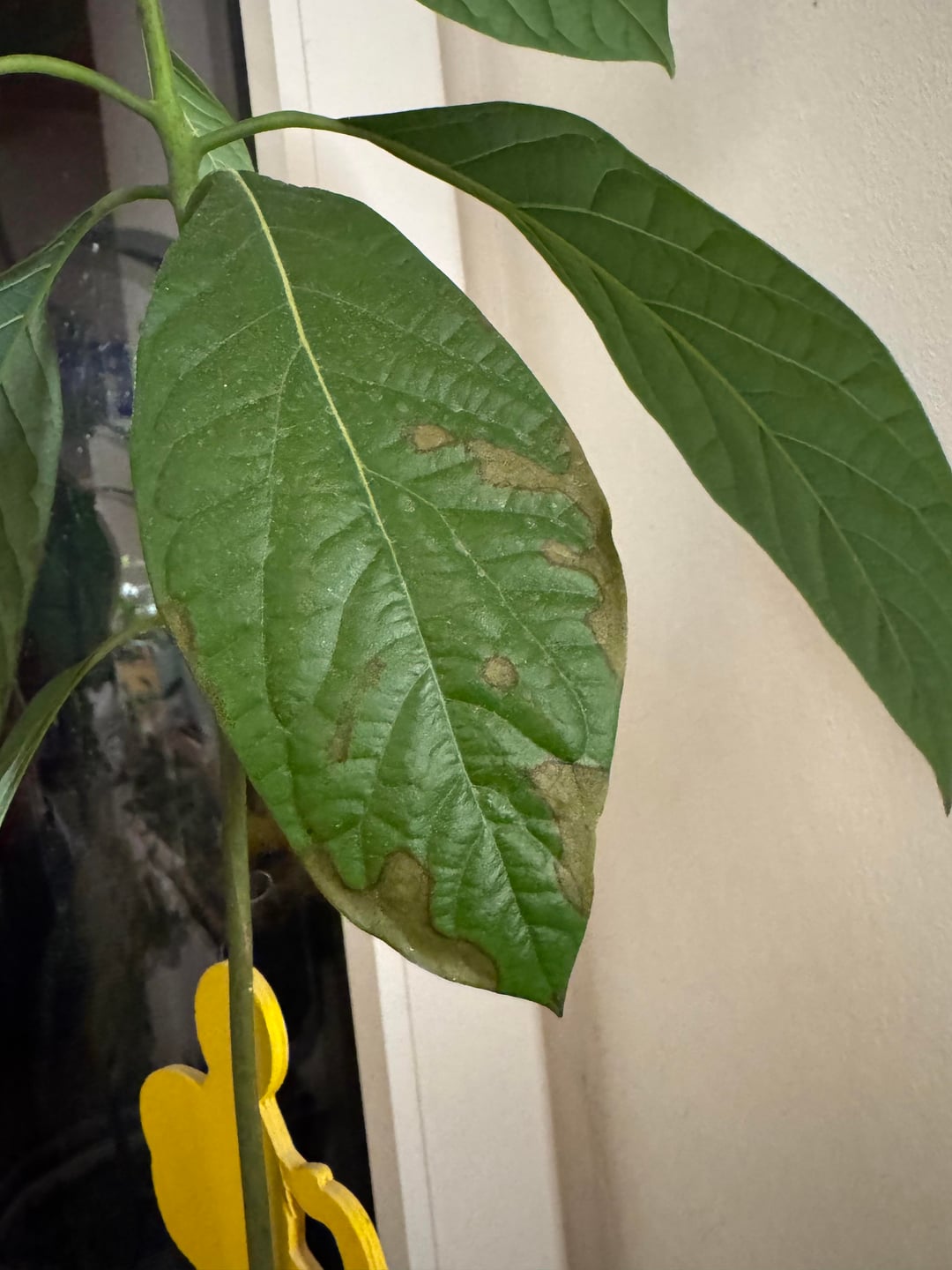 eine meiner Avocadopflanzen bekommt auf einmal braune Stellen an den Blättern. Die Blätter fühlen sich auch irgendwie unelastisch an.