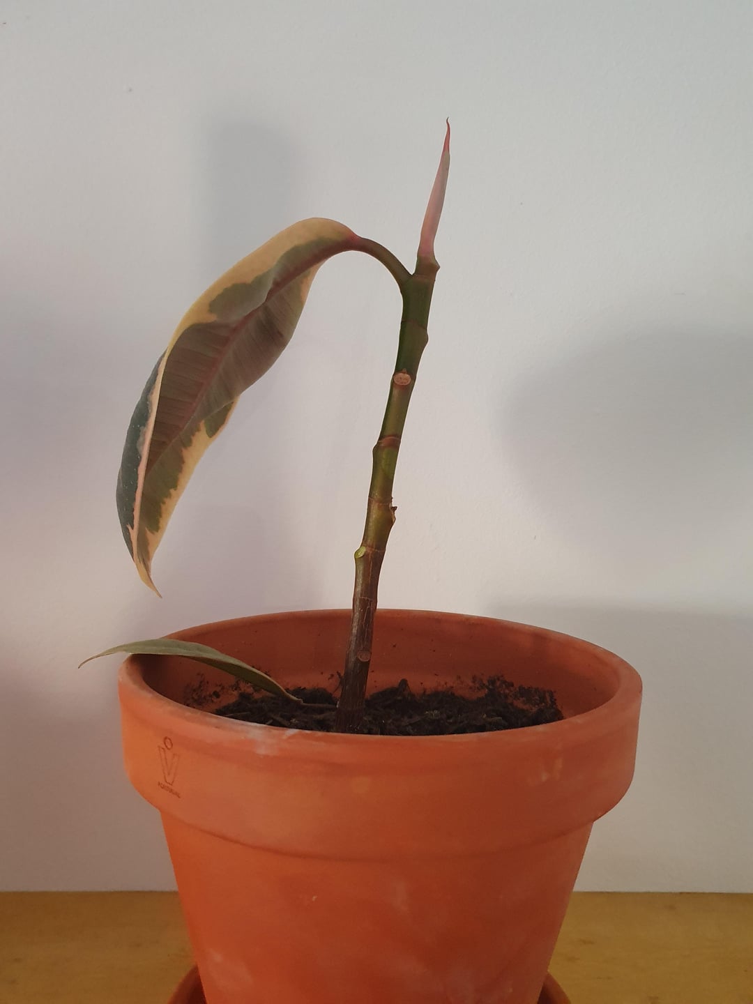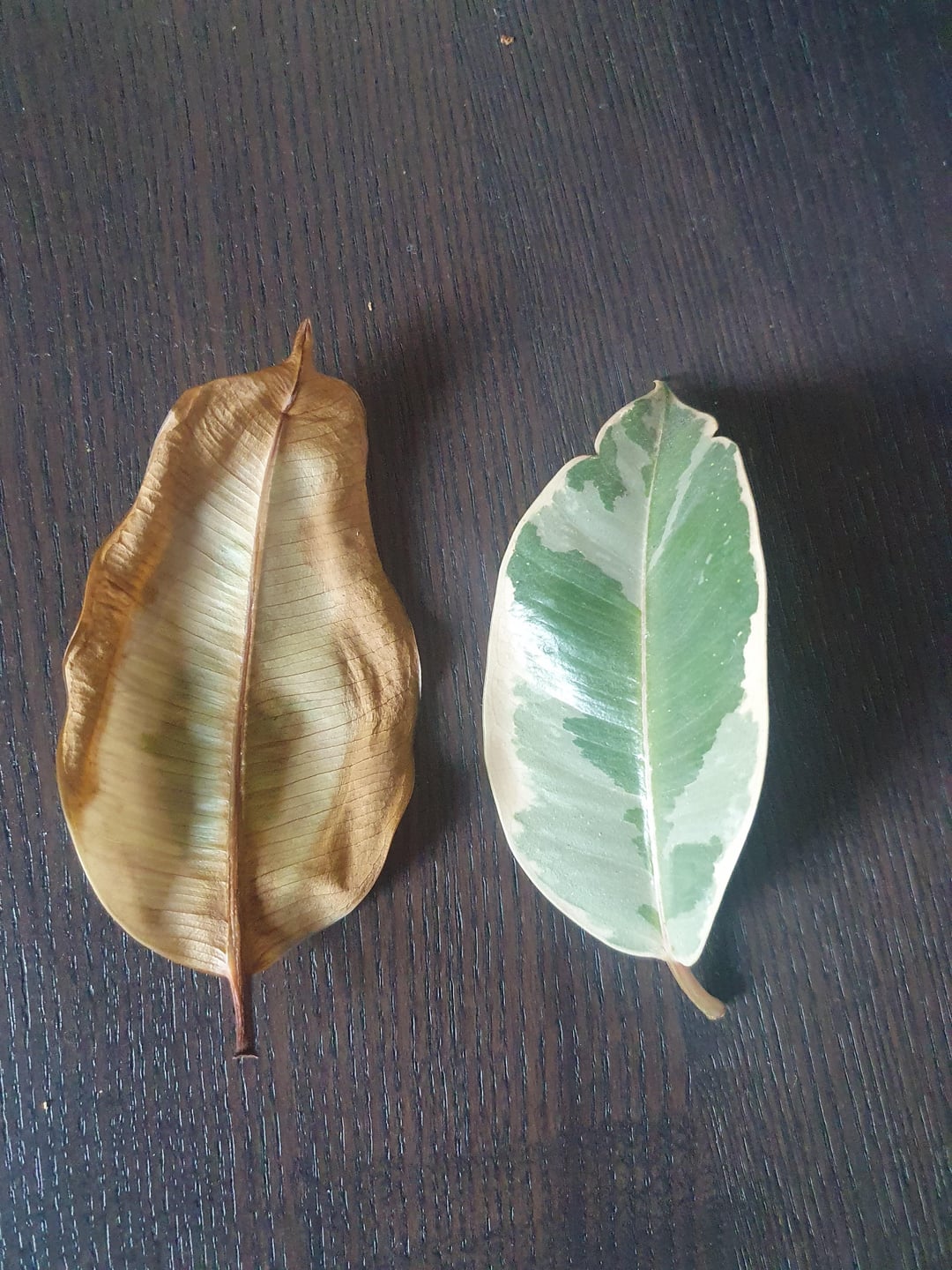 Ich habe diesen kleinen Ficus seit dem Frühjahr, er hat aufgrund eines Pilzes schnell 2 oder 3 Blätter verloren. Danach hat es sich stabilisiert, keine neuen Blätter, aber auch keine Probleme. Heute Morgen fiel mir auf, dass ein Blatt gefallen war, das gelbe auf dem Foto, und dass die anderen völlig auf Halbmast standen. Kaum berührten sie die Blätter, löste sich ein neues, das grüne auf dem Foto. Was mich sehr überrascht hat, denn sie scheint in ziemlich guter Verfassung zu sein.