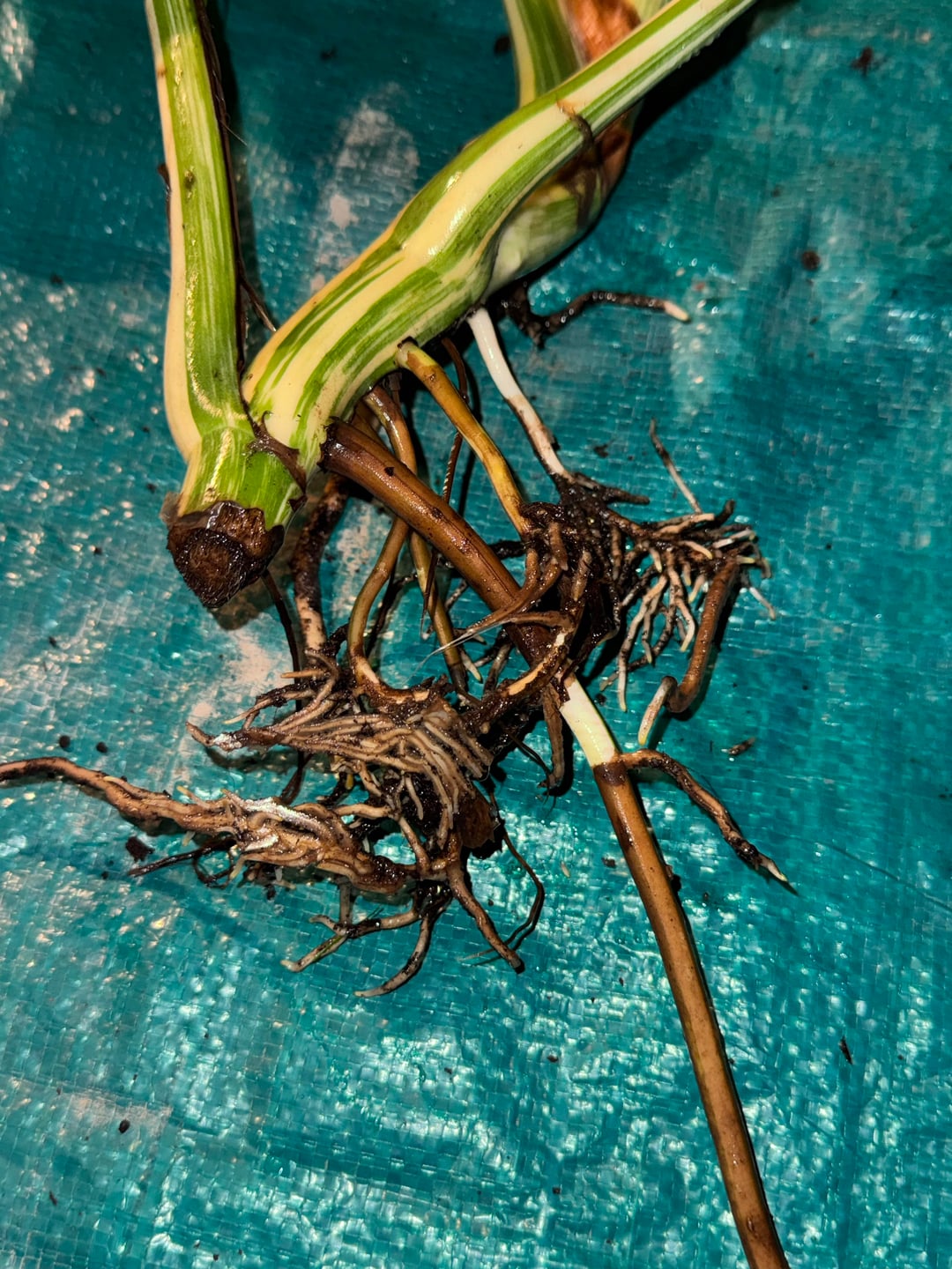 als kleines Update zu meinem letzten Post (https://www.reddit.com/r/zimmerpflanzen/s/j9RkVJk0O2 ) habe ich meinen Albo Variegata Ableger nun umgetopft.
