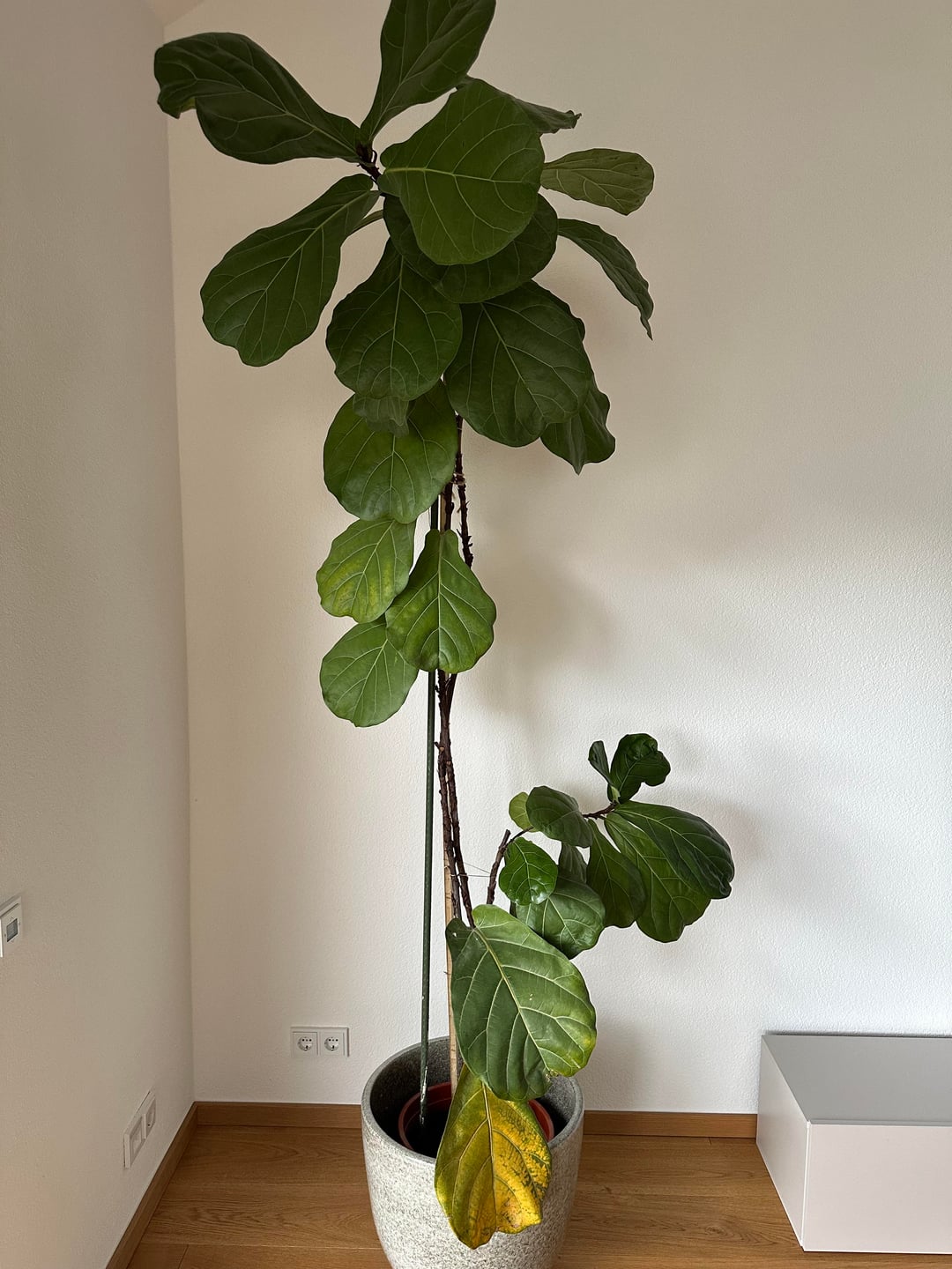 wir haben im Juni diesen Jahres eine wunderschöne ca. 3m hohe Geigenfeige mit drei Stämmen übernommen.