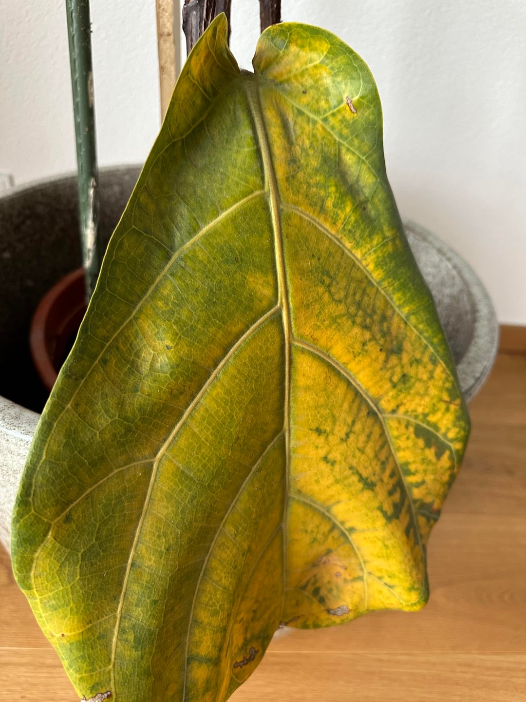Seit September hat sie allerdings angefangen jeden Tag 1-2 Blätter abzuwerfen. Bunt gemischt zwischen leicht gelben, dunkelgrünen, großen, kleinen..bald sind keine mehr übrig.