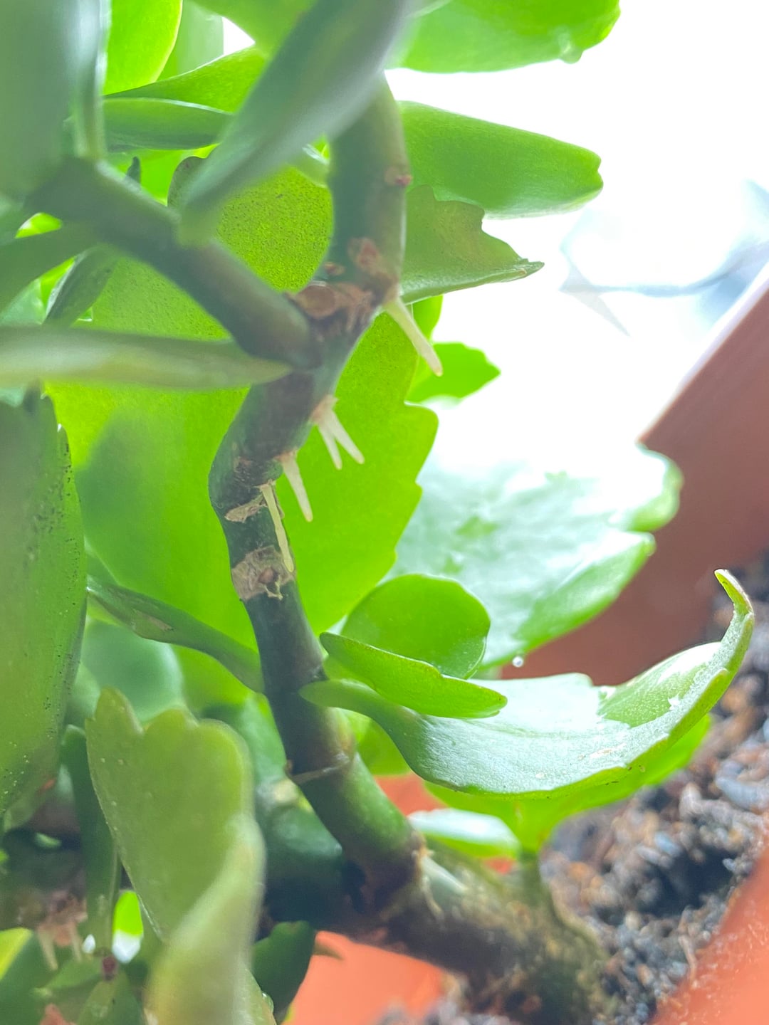 Mein Flammendes Kätchen fängt an Luftwurzeln zu bilden und hat unten einen pflaumigen film an den Löchern aber von oben sieht sie eigentlich echt gesund und stark aus. Weiß einer woran das liegt?
