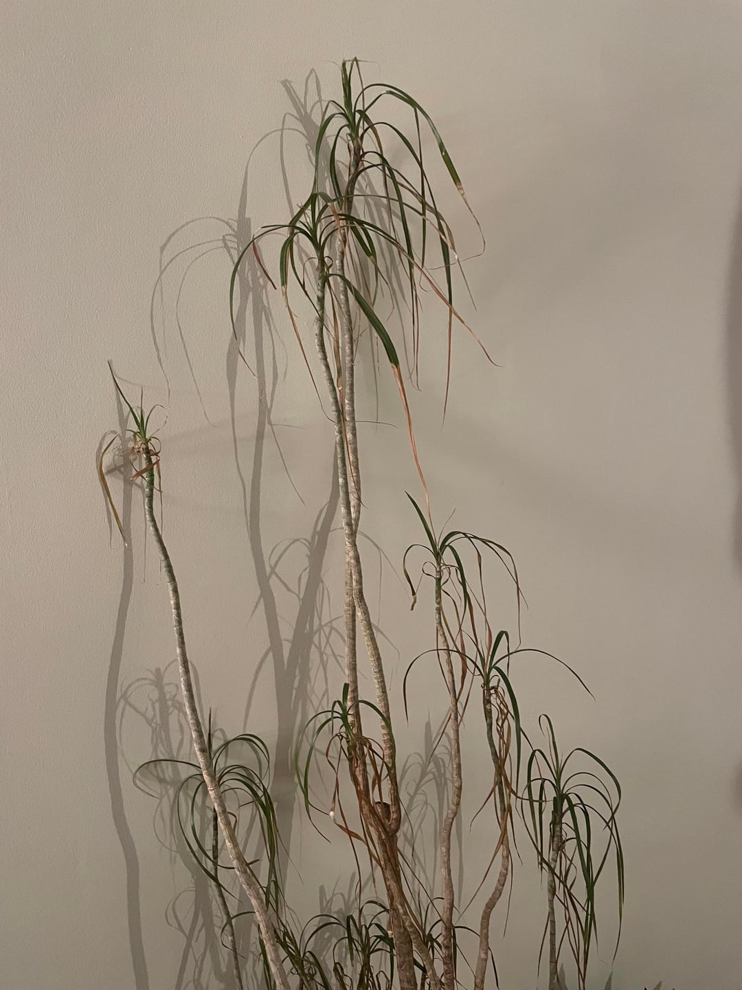 Seit meinem Umzug hat sie nun aber fast alle Blätter abgeschmissen, zwei Äste sind ohne Gewalteinwirkung einfach umgeknickt.