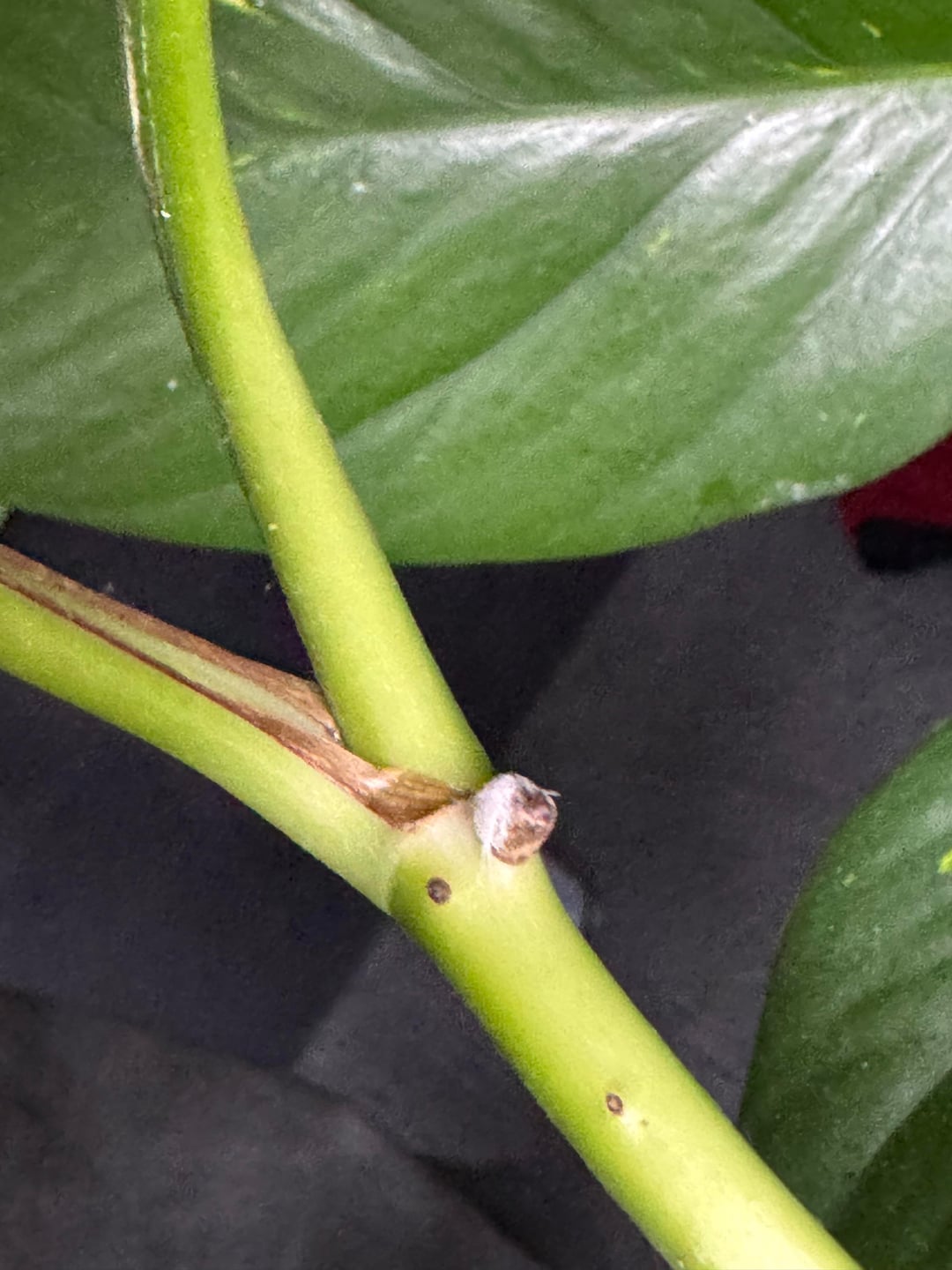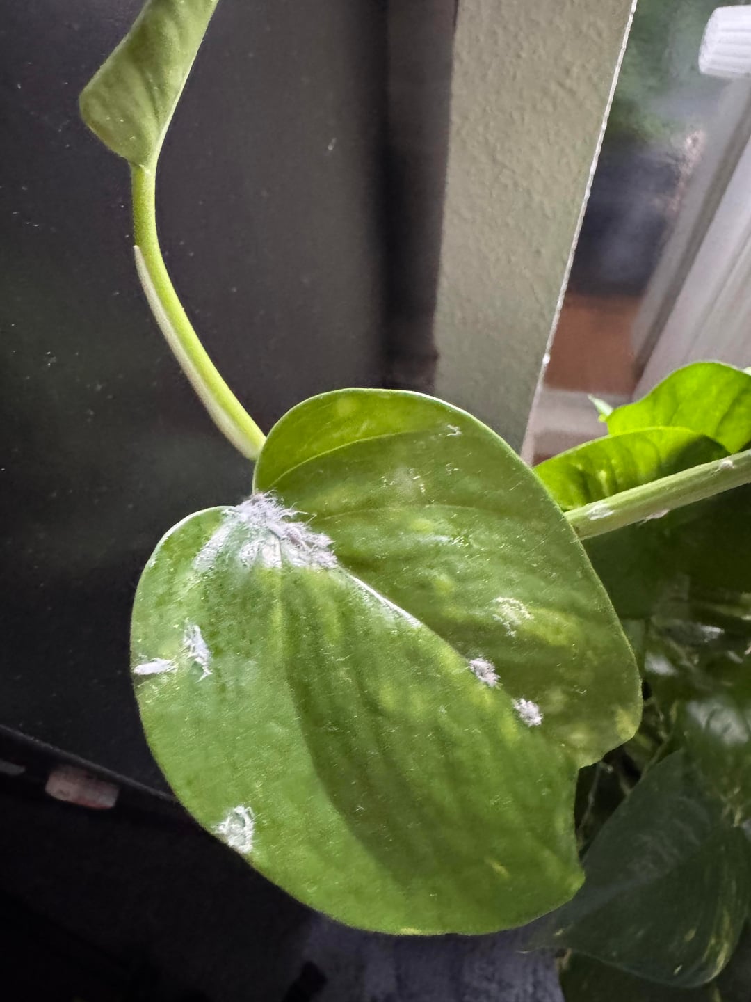 beim Giesen ist mir dieses komische Muster auf meiner Pflanze aufgefallen, sie scheint gesund zu sein aber etwas staubiges liegt auf ihr und sieht auch aus wie ein kleines Tierchen.