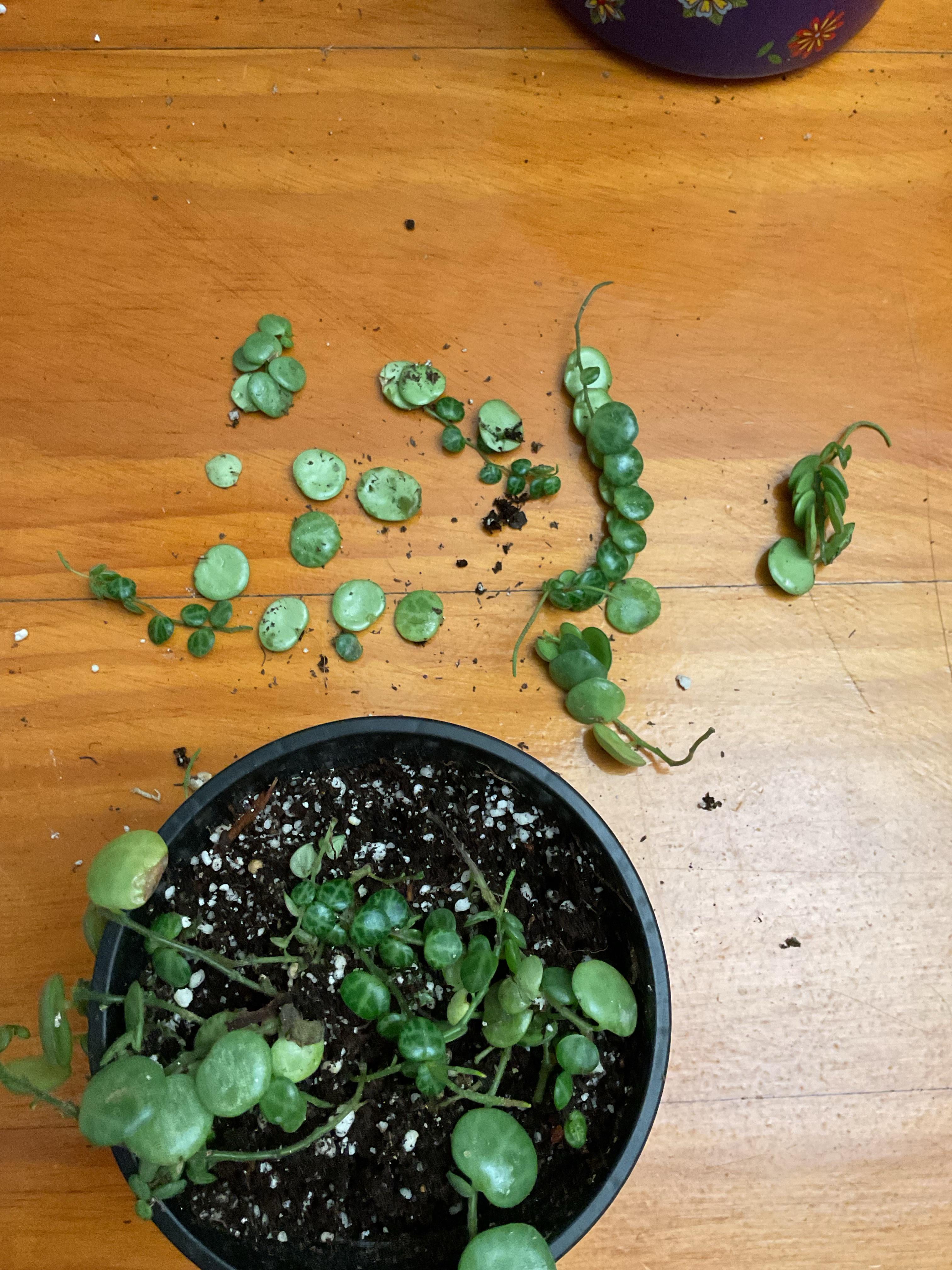 Havenât grown this but I have grown string of hearts, string of pearls, and an absurd amount of other succulents. Just shove the ends of the broken pieces into the dirt and/or drop some dirt over the middle sections. Theyâll grow. Succulents are very forgiving as long as you donât drown them!