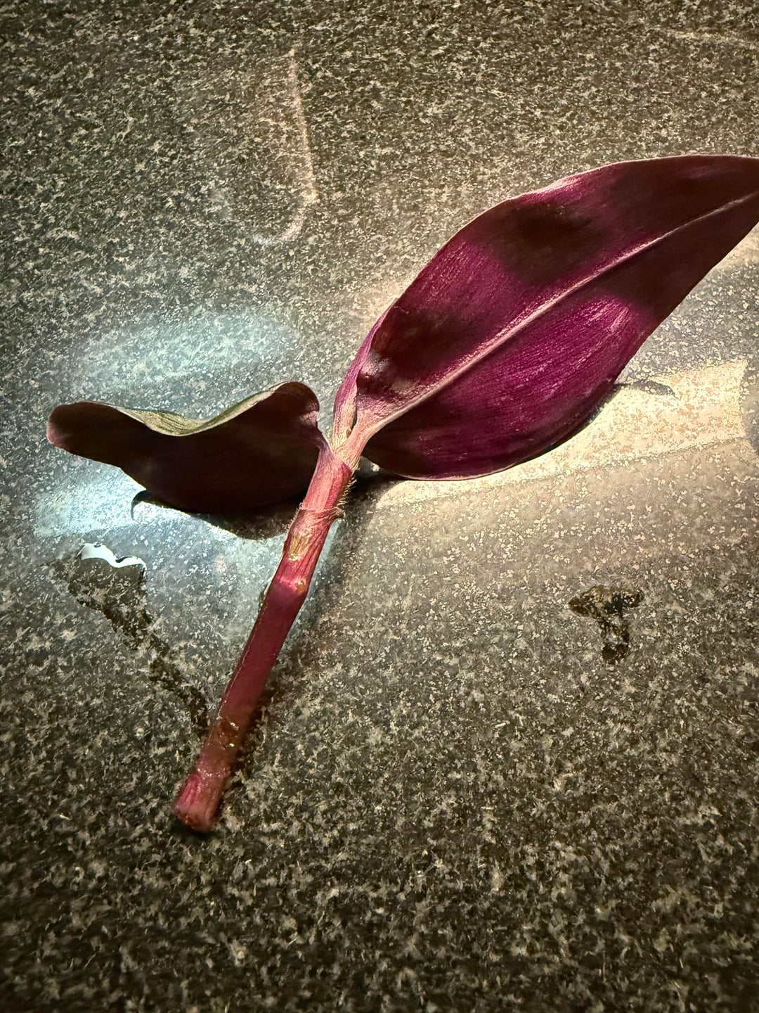 Habe diese Tradescantia gefunden, kann sie aber nicht identifizieren. Die Blattrückseite ist samtig grün und violett. Von: EastNorthWestculture