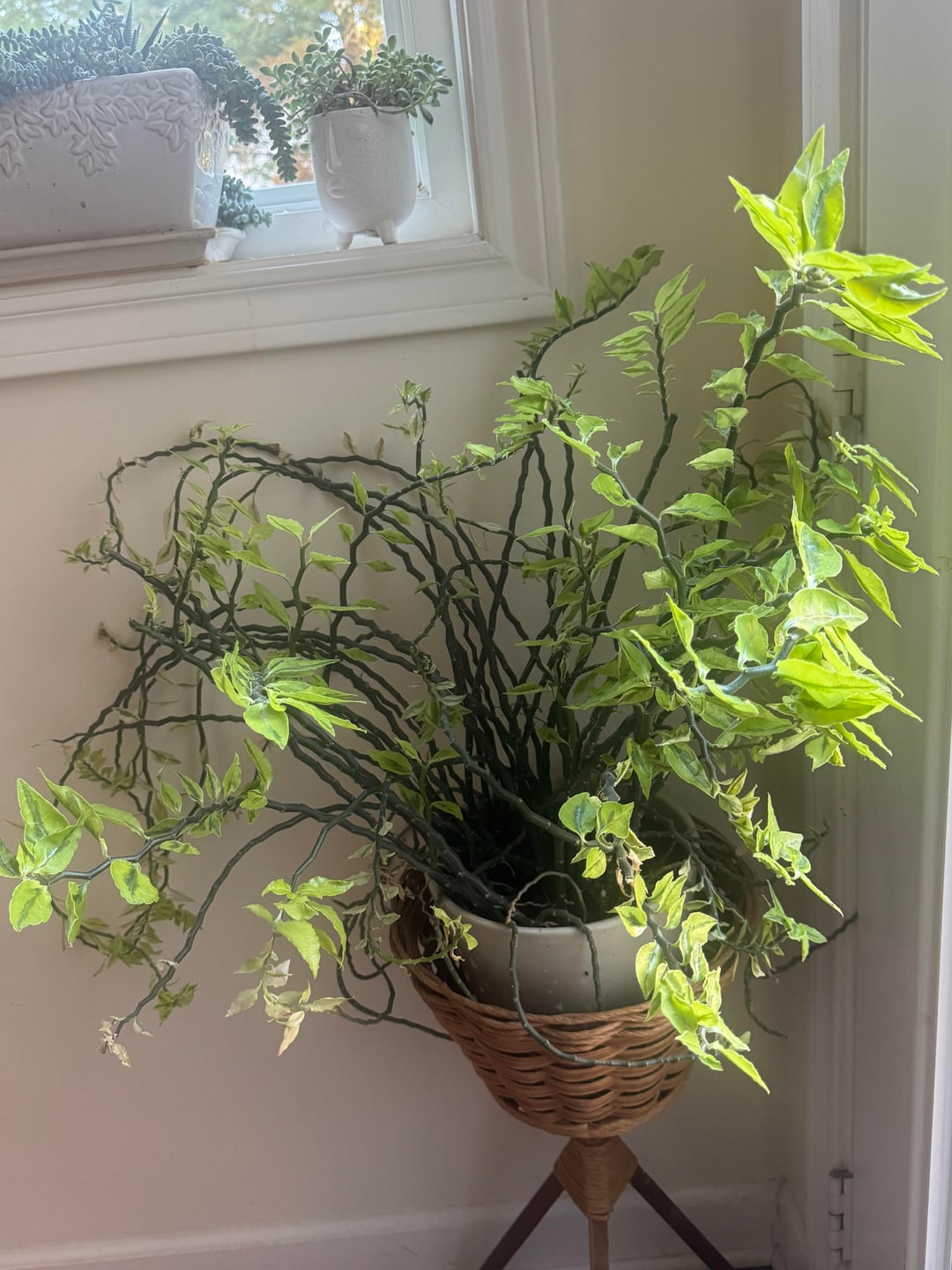 Ein Freund hat mir vor ein paar Wochen ein propagiertes Neon-Pothos geschenkt und jetzt bin ich im Anfangsstadium der Sucht. Dies ist die Pflanze eines anderen Freundes und ich habe noch nie einen eigenen Steckling gemacht. Kann ich einige der kahlen Ranken auf der linken Seite abschneiden und die Knoten dort abstützen, wo das Blatt bereits abgefallen ist, oder bedeutet das, dass es tot ist? Oder sollte ich von der Blattseite auf der rechten Seite schneiden? Danke! 😊