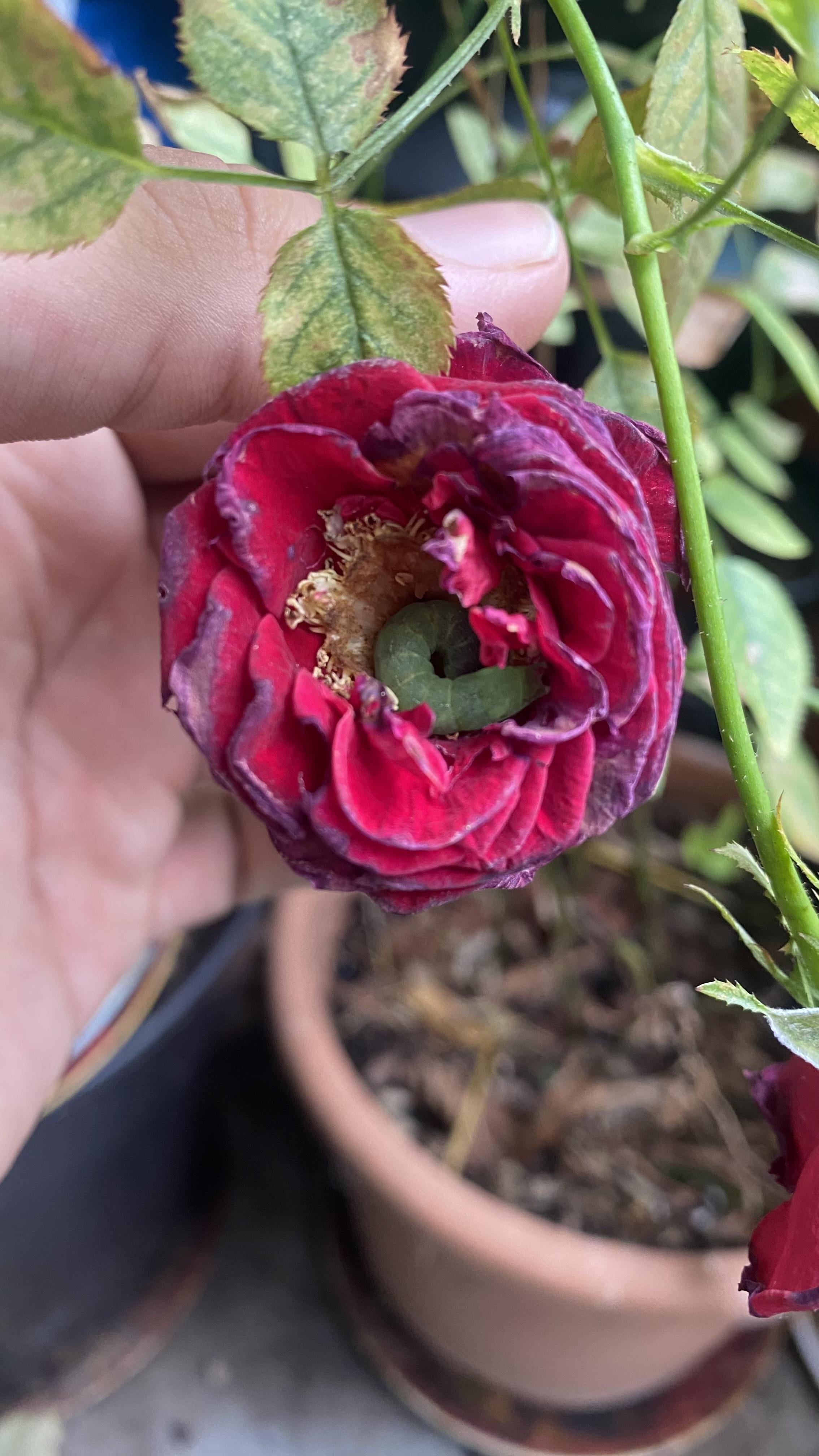 J’en ai récupéré deux du même style en lavant des salades et je les ai mises dans des plants de salade dans la véranda en supposant vu la taille , que c’était bientôt l’étape de la chrysalide et que ça permettait de voir quel papillon allait sortir . Ça fait déjà un mois , pas de nouvelles, et les plants sont intacts donc elles sont soit crevées soit en hibernation dans un coin tranquille 😀
