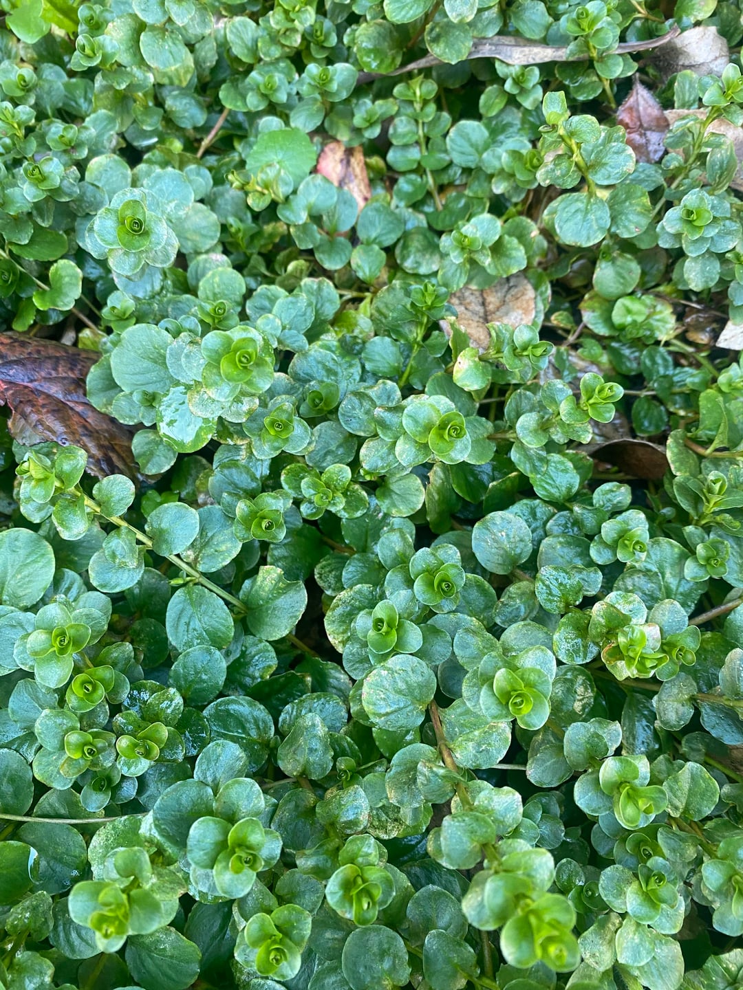 ERSTES BILD Ist das Unkraut, das entfernt werden sollte? Auf dem Pflanzenkennzeichen auf meinem Handy steht „Kriechende Jenny“ – soll ich sie als Bodendecker behalten und den Lehmboden aufbessern und im Frühjahr entfernen?