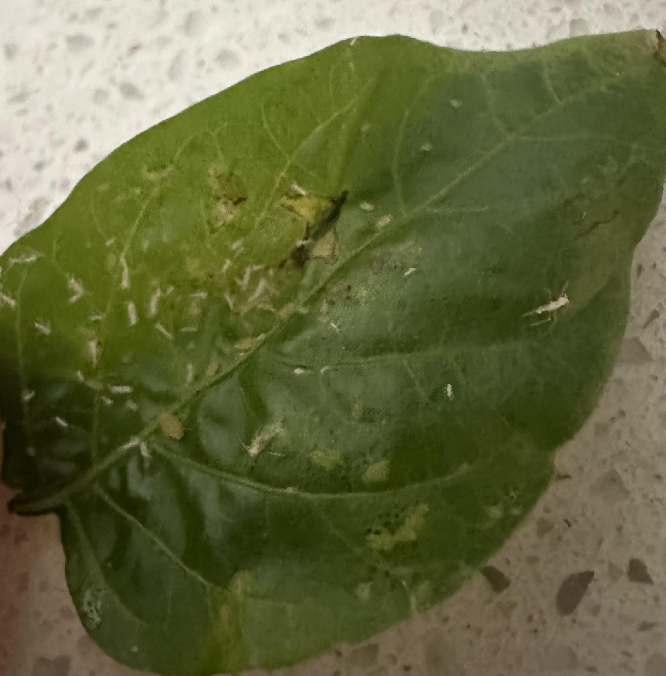 Ich habe meine Pfefferpflanze vor ein paar Wochen ins Haus gebracht. Heute sind mir diese kleinen Wesen auf den Blättern aufgefallen. Einige von ihnen stecken fest, andere kriechen herum.