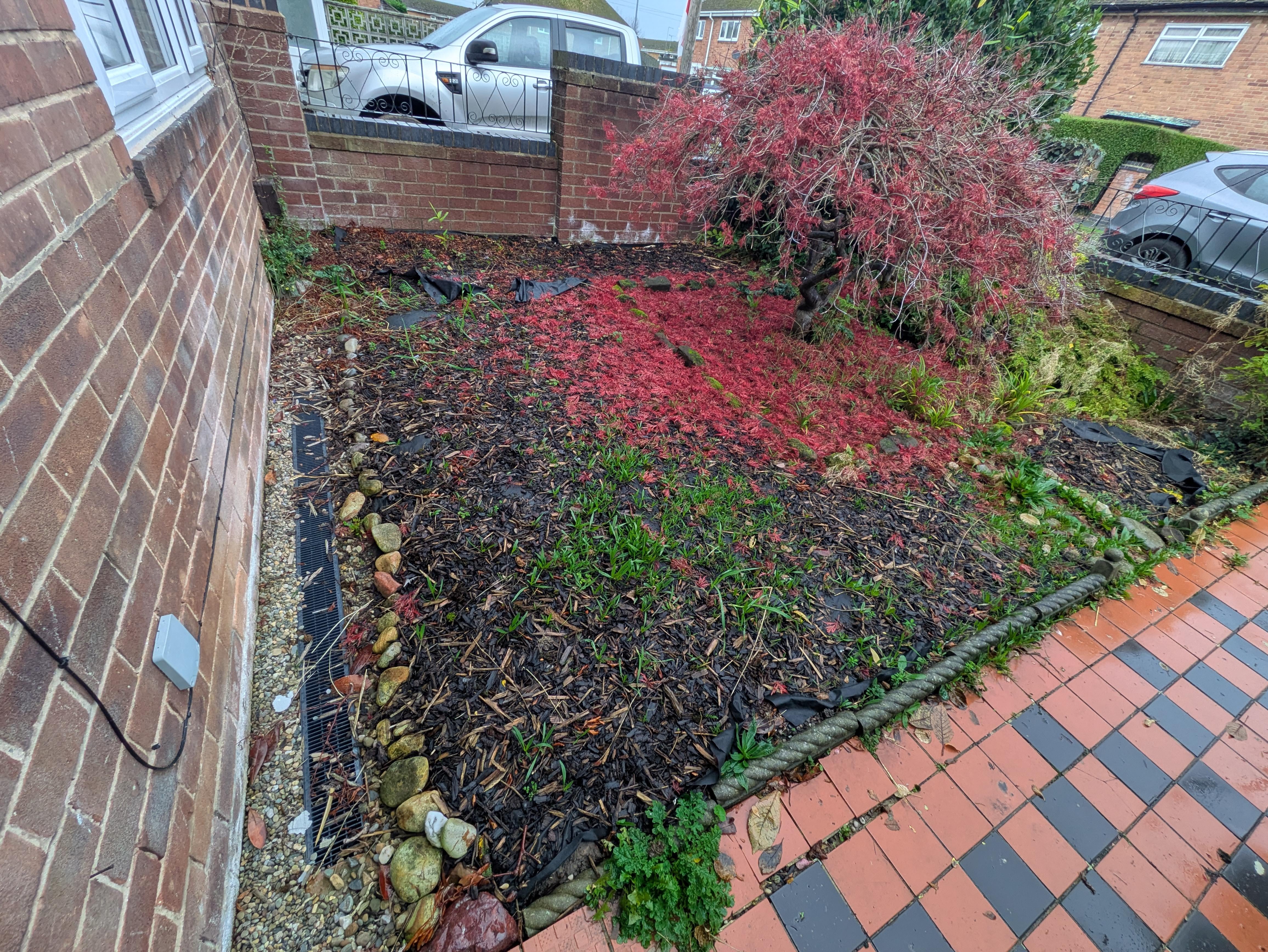 Ich bin neu in diesem Haus, der Vorgarten hat Rinde am Boden, ich denke über ein paar Änderungen nach, darunter das Entfernen der Rinde und das Pflanzen von Wildblumen, aber ich bin mir nicht sicher, ob sie wachsen werden, da es aufgrund der nahegelegenen Vegetation an Sonne mangelt und er nach Nordosten ausgerichtet ist. Werden Wildblumen wachsen oder wird es am Ende nur kahl aussehen, bis das Unkraut es überholt? Alle Ideen willkommen. Ich werde im Dezember einige überlappende Zweige am Acer abschneiden.