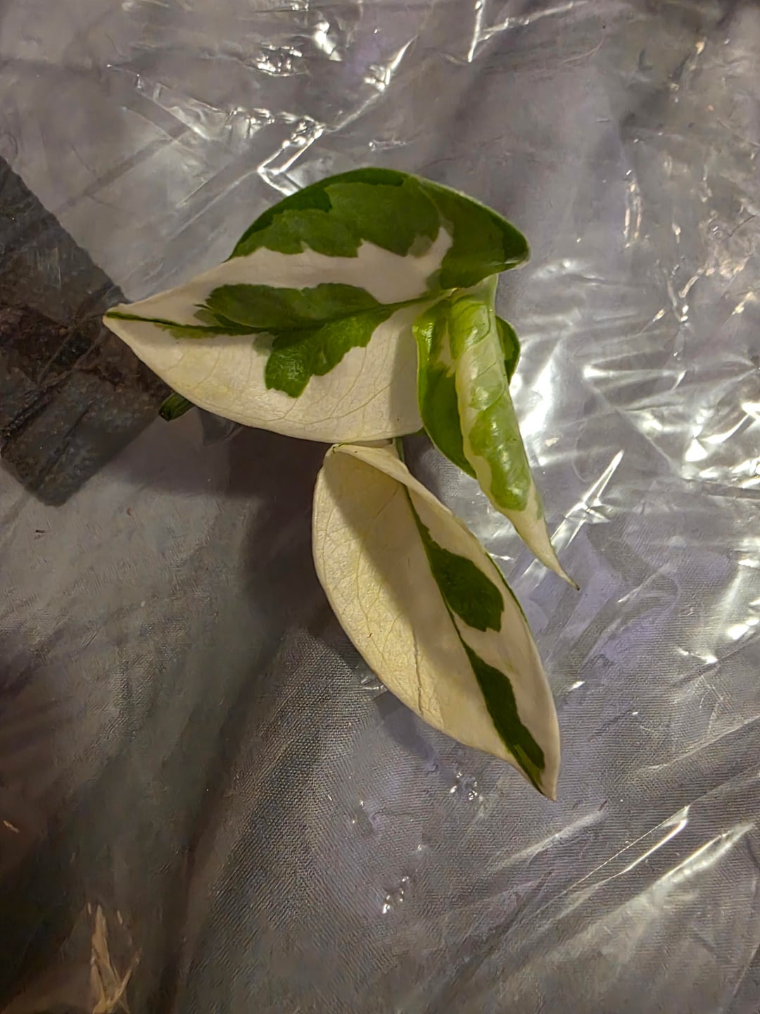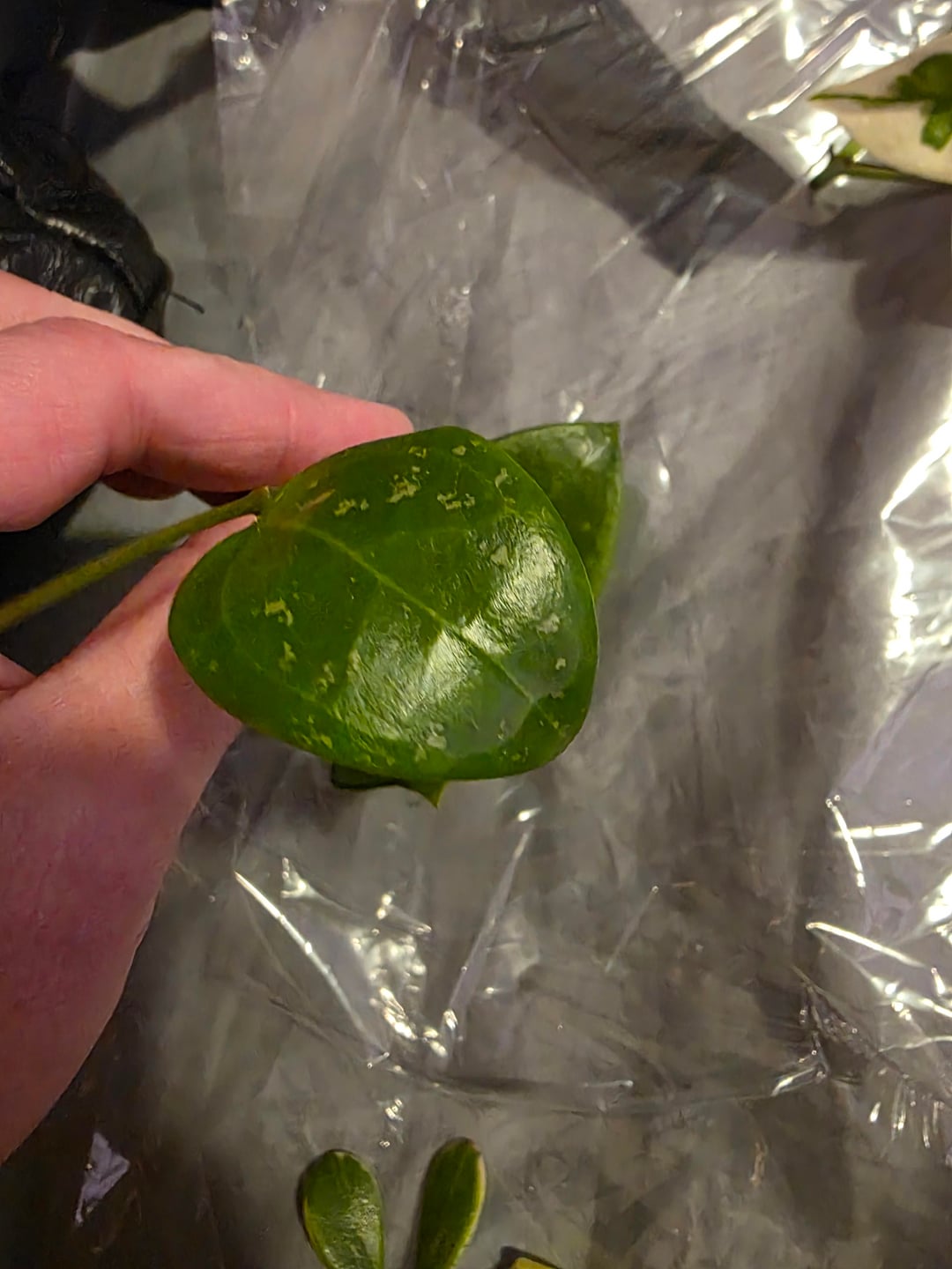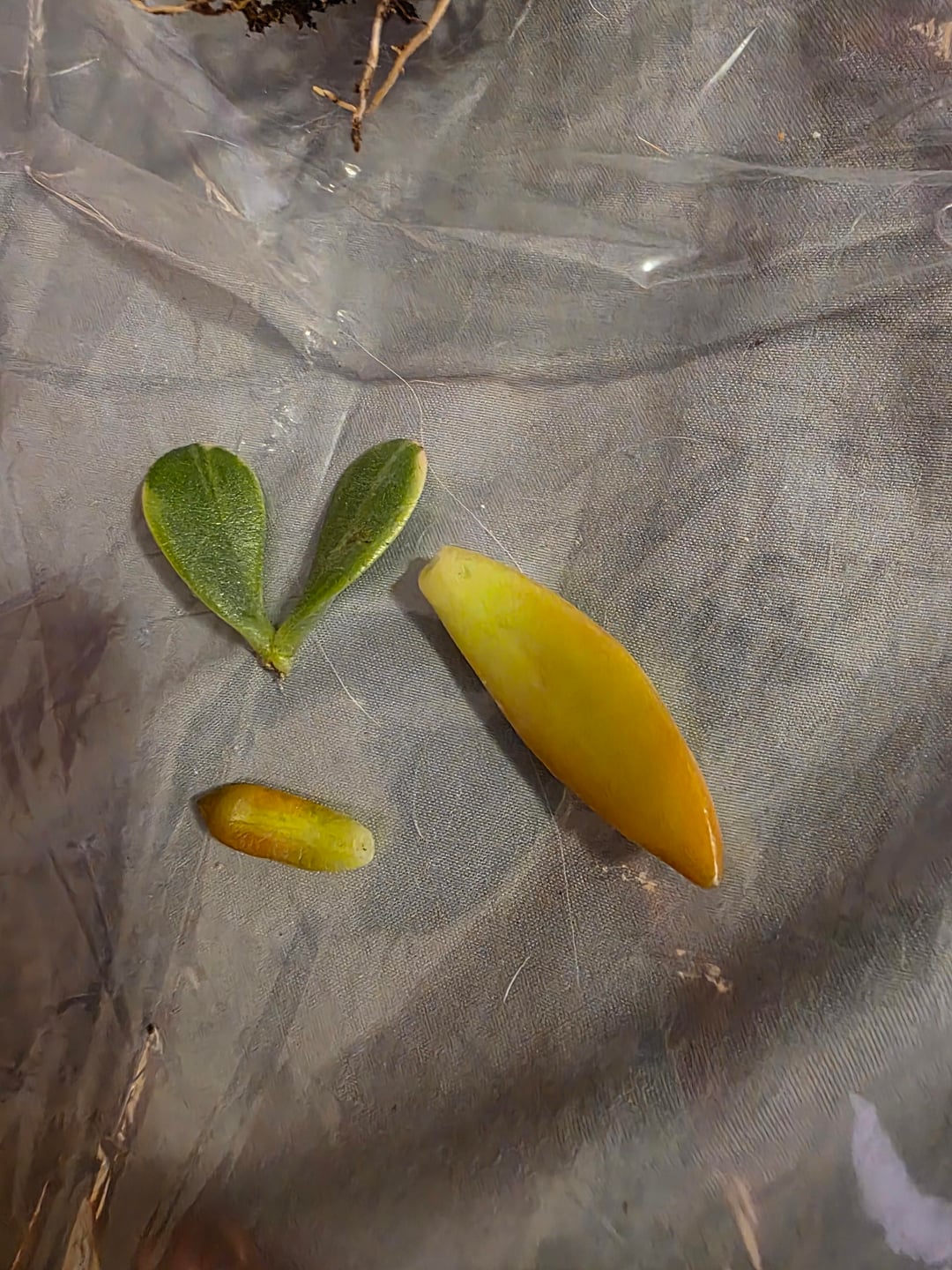 Das war erstaunlich. Ich war im Home Depot und suchte nach einem Weihnachtskaktus, und die Frau von ihrem Lieferanten, Hampshire Farms, war dort. Sie hatte einen ganzen Wagen voller Wegwerfpflanzen. Meistens absolut zu retten, aber die Unternehmensrichtlinien besagen, dass sie weggeworfen werden, wenn sie nicht mehr gut aussehen. Ich sagte, es sei schade, dass wir keine Stecklinge nehmen könnten. Sie sagte, dass es ihnen nicht erlaubt sei, sie wegzugeben, aber die Regeln sagen nichts über Stecklinge aus. Sie holte mir sogar eine Schere. Bei einigen davon sahen nur kleine Teile noch anständig aus, und sie half mir, die Wurzeln herauszubekommen. Sie hat sicher die Regeln missachtet, aber das macht sie einfach großartig. Weiß jemand, was dieser große grüne und rötliche Steckling ist?