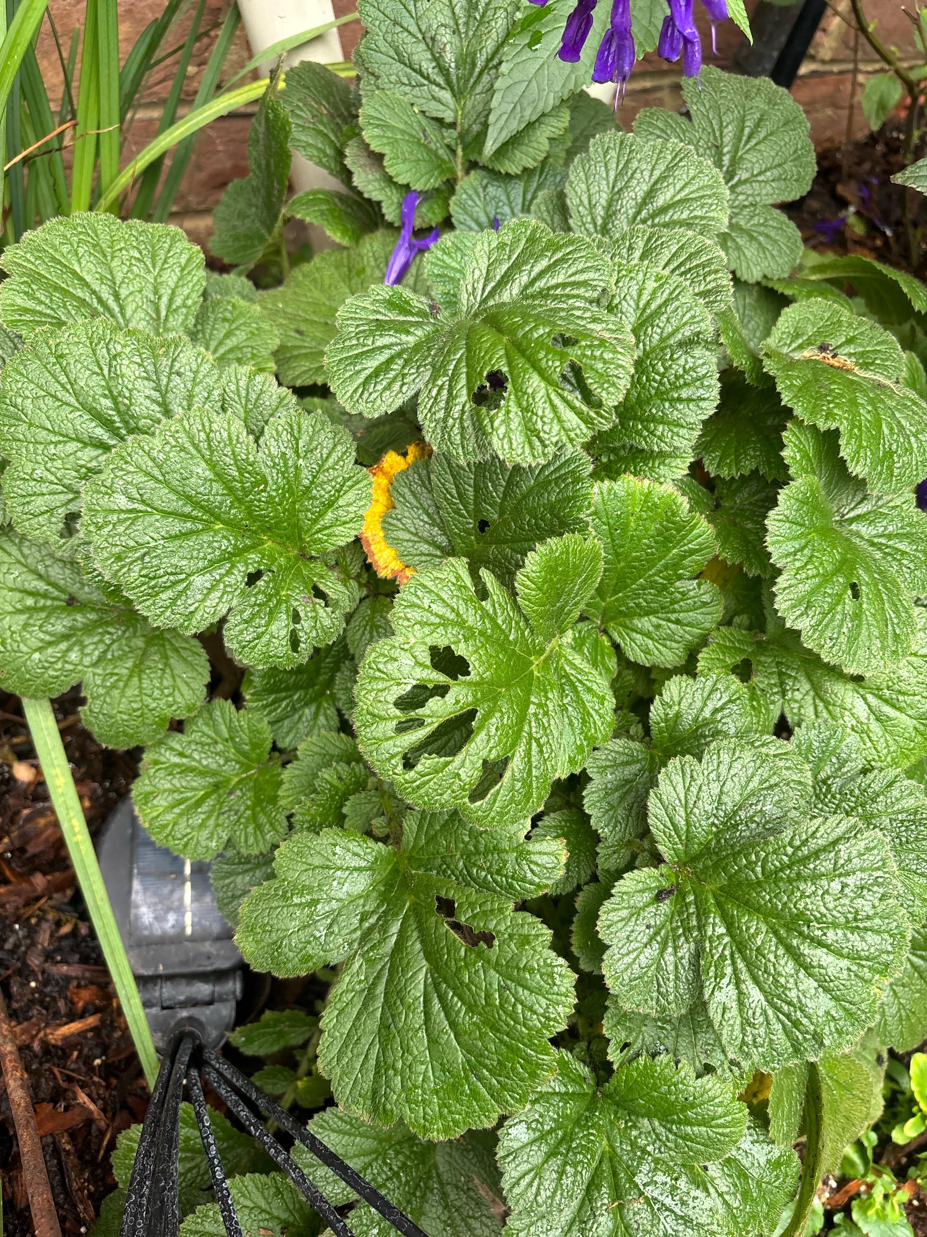 Vor etwa einer Woche traten Löcher in beiden Rabatten auf (in Geum, Paprika und Lammohr, die kürzlich mit Holzspänen gemulcht wurden) und in einer Pflanze in meinem Frühbeet (eine Schwarzaugen-Susan-Vermehrung, die ich jetzt aus dem Rahmen entfernt habe). Was sind diese wahrscheinlich und was soll ich tun? 😅