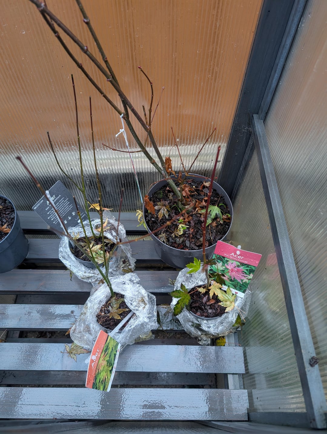 Ich habe diese Acer kürzlich gekauft und bin mir nicht sicher, wie ich sie am besten pflegen soll. Ich habe etwas Ericaceous-Erde gekauft. Welche Topfgröße sollte ich verwenden, sollte ich der Erde etwas hinzufügen? Wie soll ich sie jetzt aufbewahren, wenn der Winter naht? Soll ich sie abdecken und draußen aufbewahren?