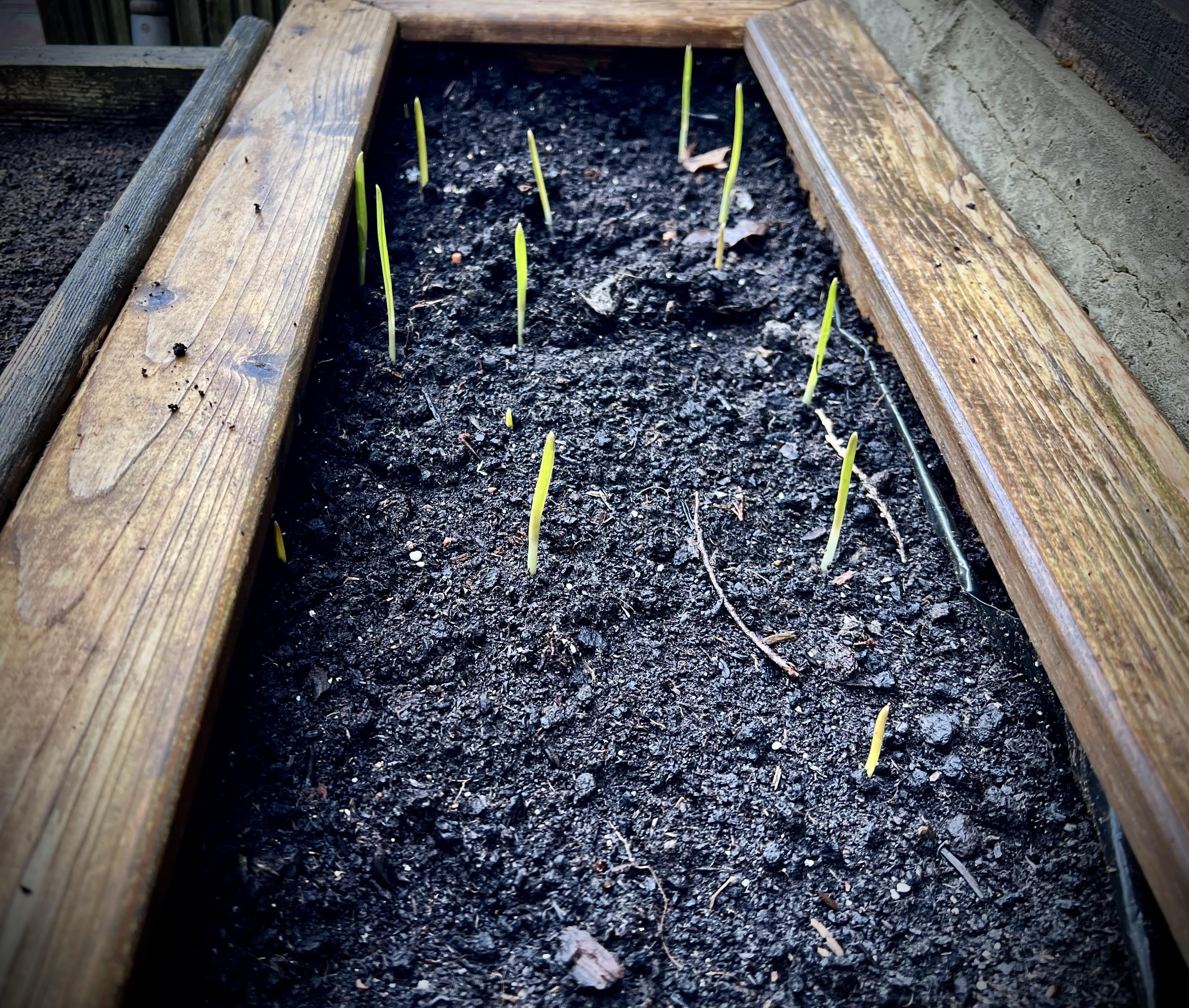 Die Keimung des Knoblauchs verlief dieses Jahr so schnell.