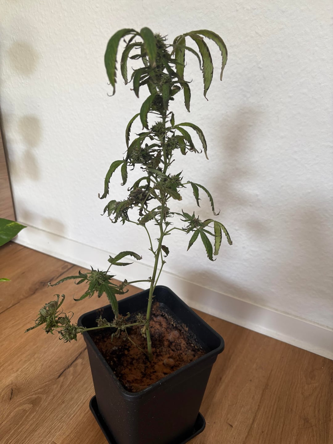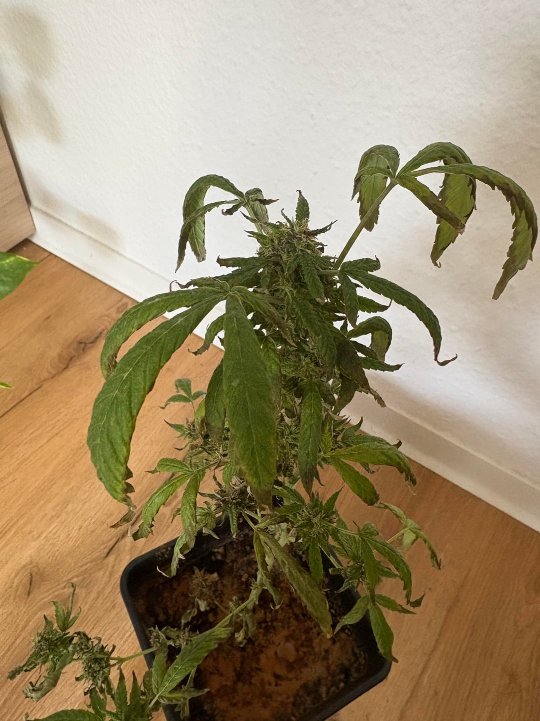 Man sieht offensichtlich, dass meine Hanfpflanze ziemlich leidet 😅 und ich schäme mich tbh auch etwas dafür. Aber ich hab schon so viel versucht um ihr zu helfen, leider ohne Erfolg. Raubmilben gegen Thripse. Schwefel gegen Mehltau und als das nicht half hab ich’s mit Milch probiert.
