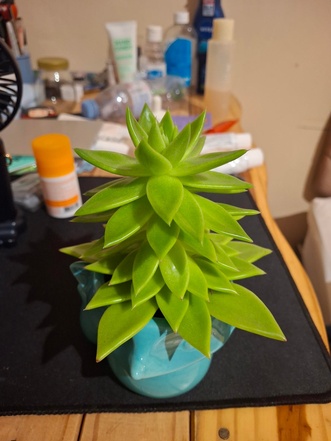 Ein paar Informationen zu meiner Pflanze. Ich habe diese Sukkulente bei einem Tesco gekauft und kümmere mich jetzt seit weniger als einem oder etwas mehr als einem Jahr um sie. Wenn ich ehrlich bin, konnte ich mich nicht wirklich daran erinnern.