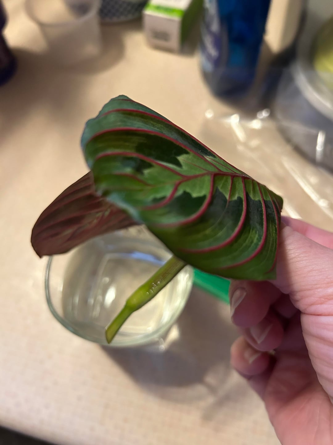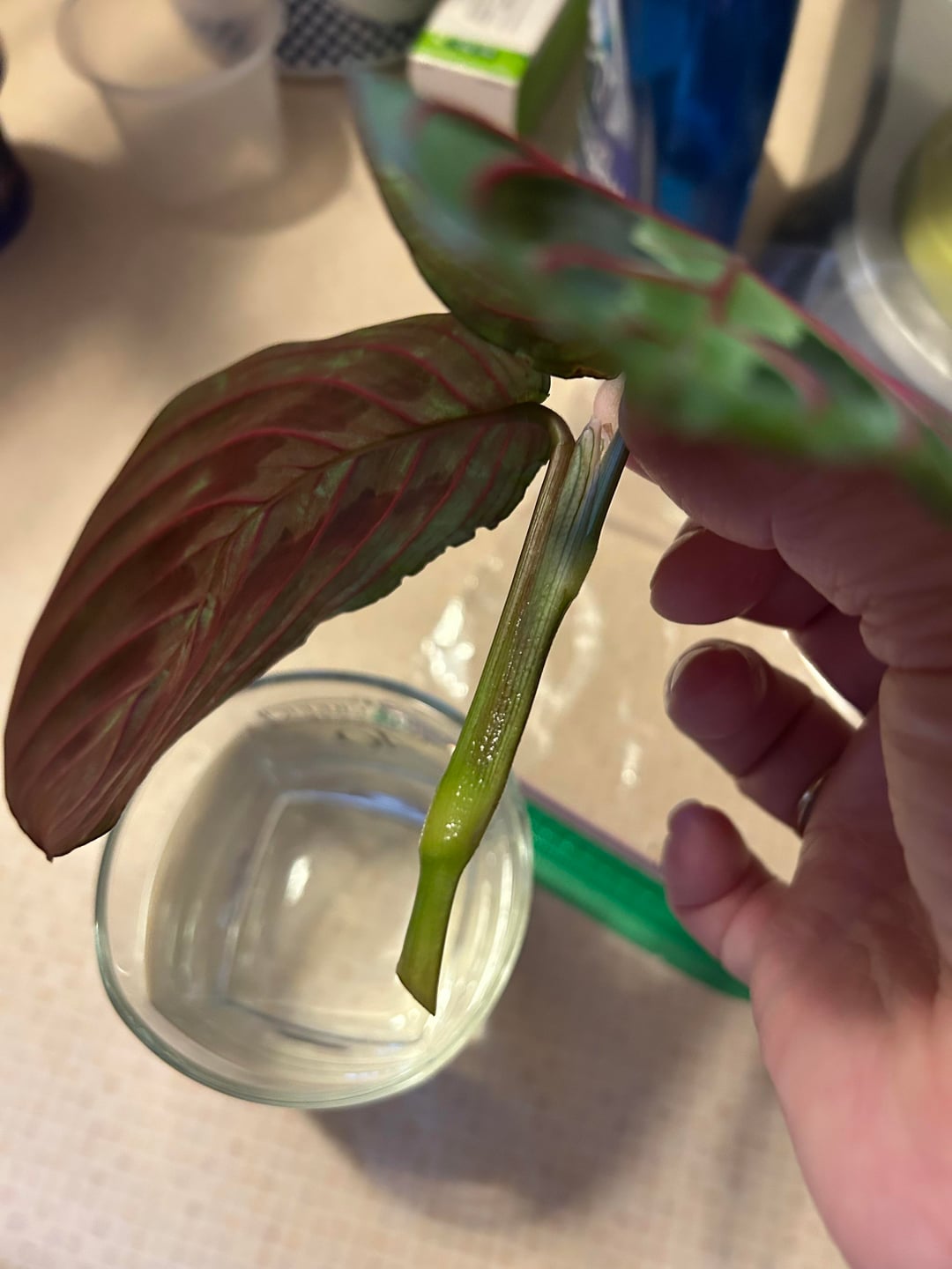 Jemand hat das im Supermarkt aus dem Regal geworfen. Die nette Kassiererin erlaubte mir, den abgebrochenen Teil aufzubewahren. Ich habe einen frischen Schnitt gemacht, bin mir aber nicht sicher, ob er für die besten Ergebnisse richtig ist.