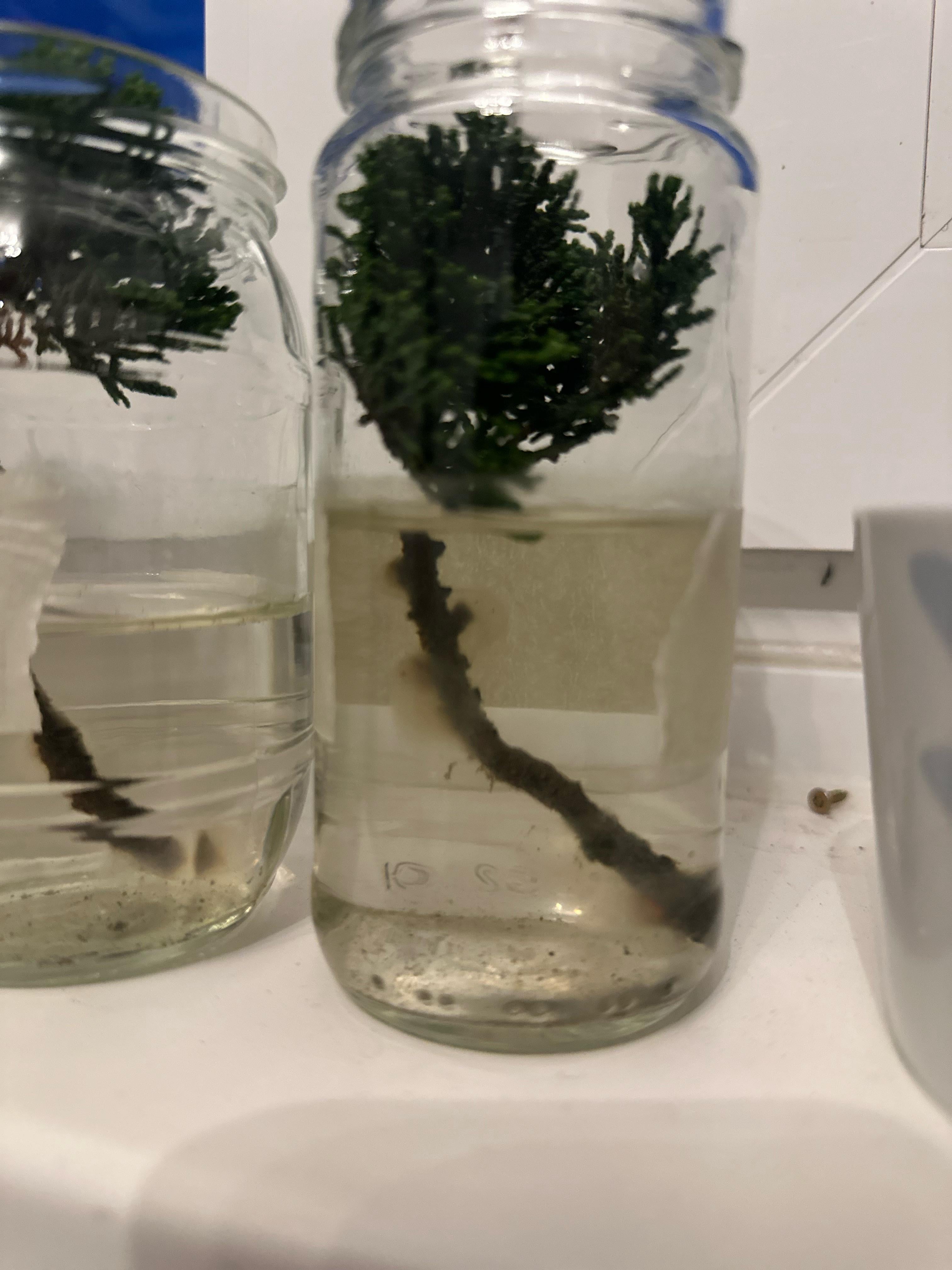 Ja die gammeln dir weg. Spülen sie gut ab und setzt sie direkt in Erde. Dauerhaft in Wasser gibt immer irgendwann gammel.