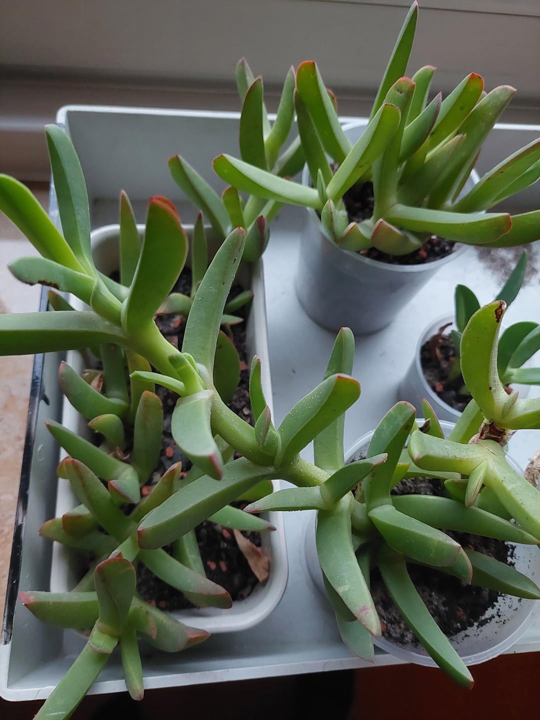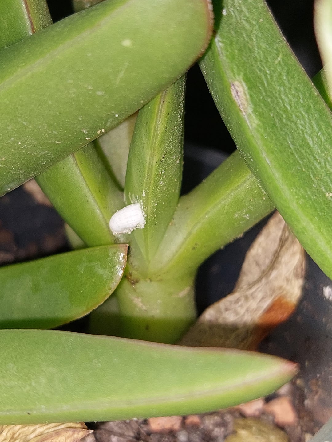Ich habe aus Frankreich eine "Essbare Mittagsblume" (carpobrotus edulis), welche eigentlich recht gut wächst, allerdings haben sich an zwei Stellen weiße, kugelige Gebilde entwickelt (Bild 2+3).