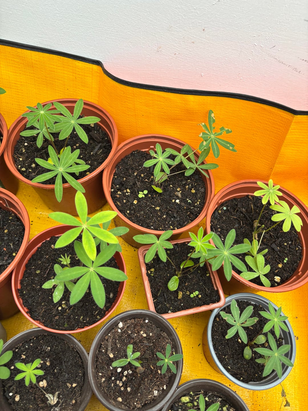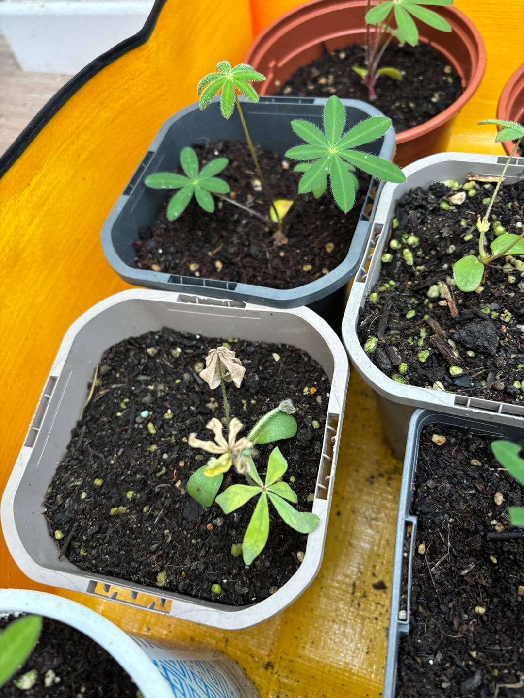 Hier sind einige Lupinensämlinge, die etwa Mitte September ausgesät wurden. Einige sehen gut aus, während bei einigen wenigen die Blätter von Insekten gefressen wurden und einfach absterben. Könnte hier jemand die Probleme identifizieren?