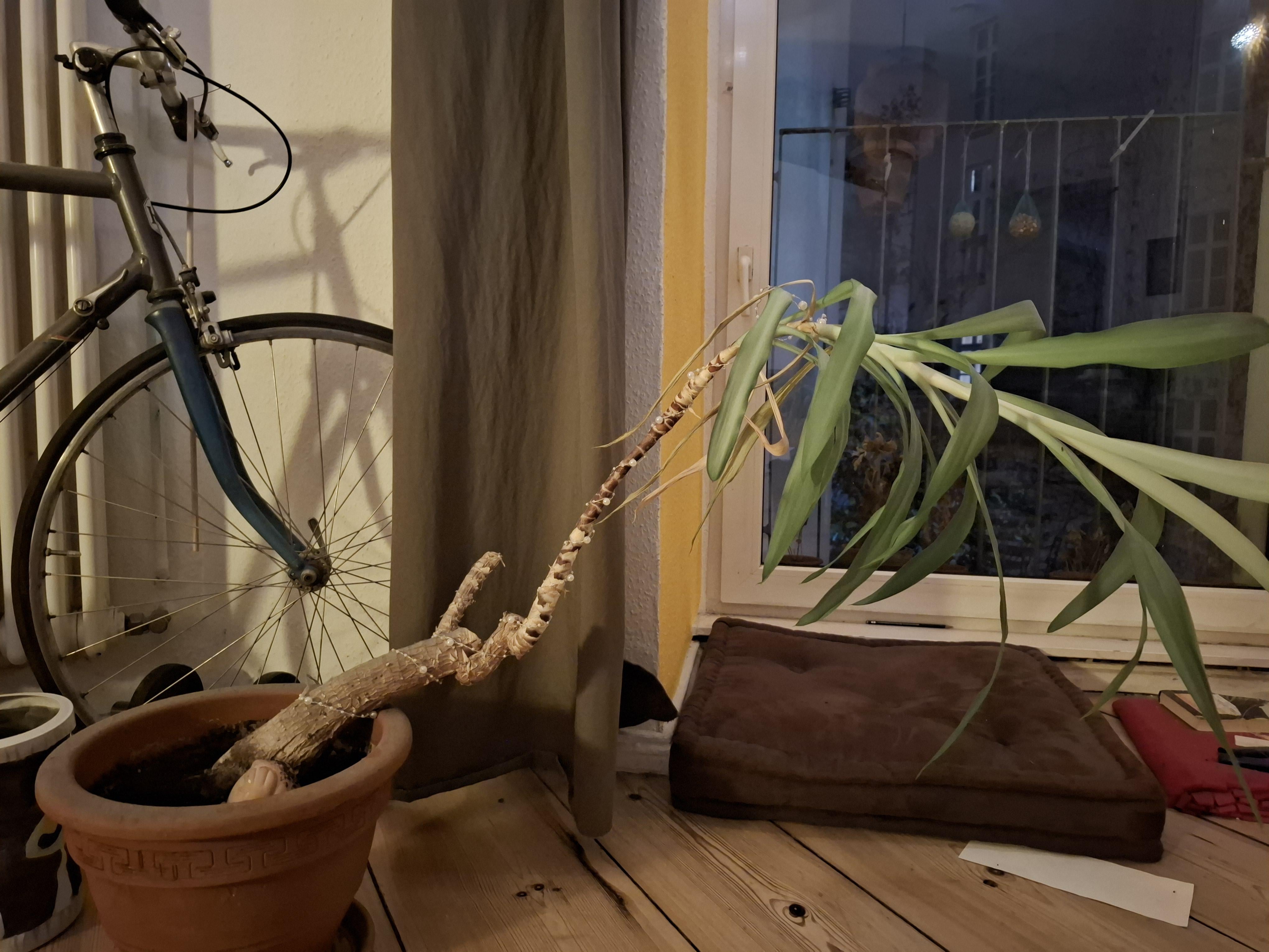 3. Da ich den Beitrag nicht bearbeiten kann, meine Edit als Kommentar: bei dem schief sein meine ich nur den Teil oben mit Blättern der jetzt herab hängt. Der untere Teil war schon immer so gewachsen