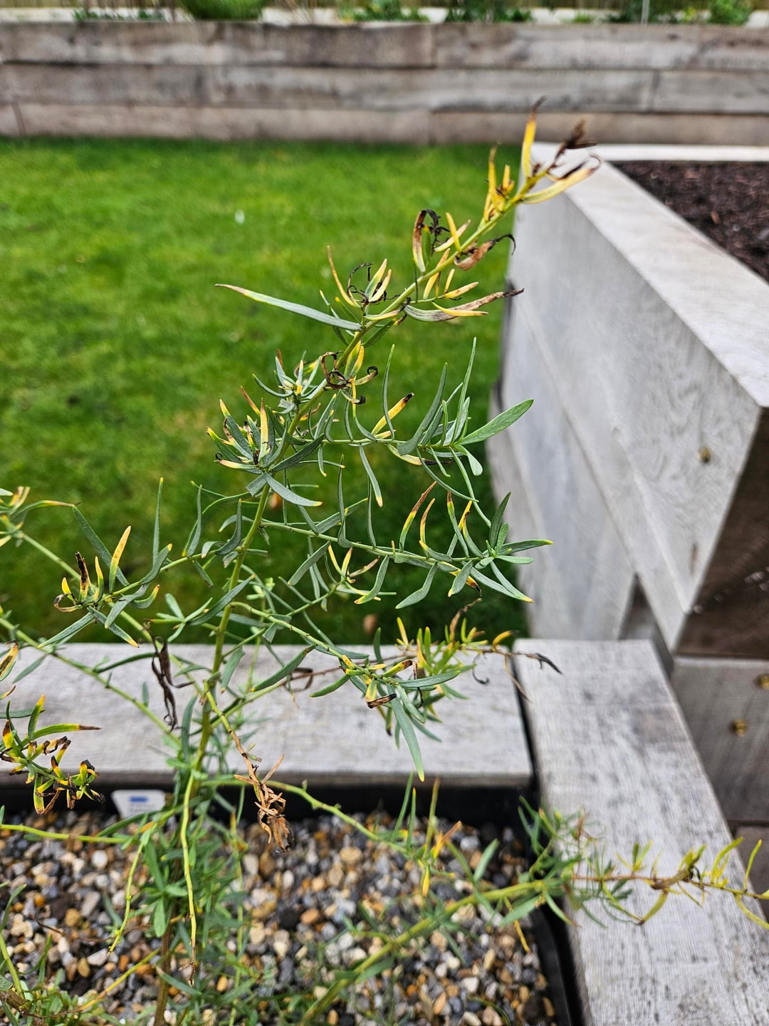 Kann mir bitte jemand einen Rat bezüglich meines Estragons geben? Während der Hitzeperiode im Sommer, als wir weg waren und die Pflanze nicht gegossen haben, verfärbten sich die Blattspitzen gelb. Es hat sich nicht erholt und Sie fragen sich, was Sie tun sollen, wenn der Winter in Großbritannien beginnt.