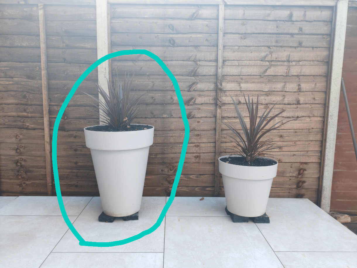 Ich habe das Gefühl, dass der Blumentopf, den ich links für meine Cordyline habe, zu groß ist und für meine Bedürfnisse genauso gut geeignet ist wie der rechte. Es war auch lächerlich schwer, es zu bewegen.