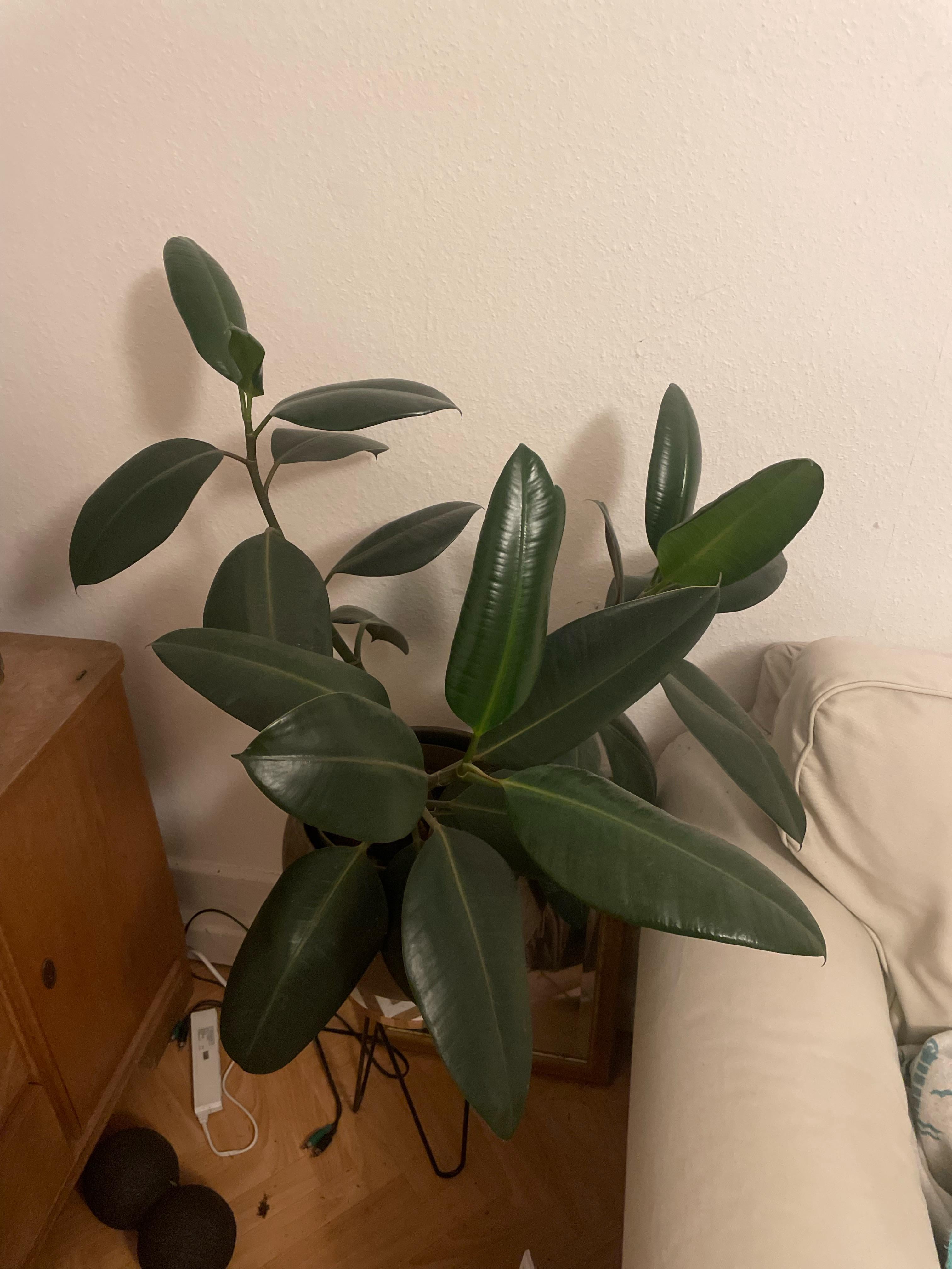 Hallo liebe Community. Meiner Pflanze ging es zuletzt nicht so gut, sie hat ein paar Blätter verloren, die total gesund aussahen. gestern habe ich entdeckt, dass ich sie übergossen hab, sie stand im Wasser 🥺. Ich habe das Wasser entfernt, und die erde von außen mal bisschen angetrocknet. Ich würde ungern eine große Umtopfaktion machen und die Wurzeln checken u so. Denkt ihr, wenn ich die Erde austrocknen lasse fängt sie sich wieder. ich hab sie vorhin minimal angefönt (also die erde) da dachte ich ich frage lieber, bevor ich irgend einen quatsch mache. Danke!