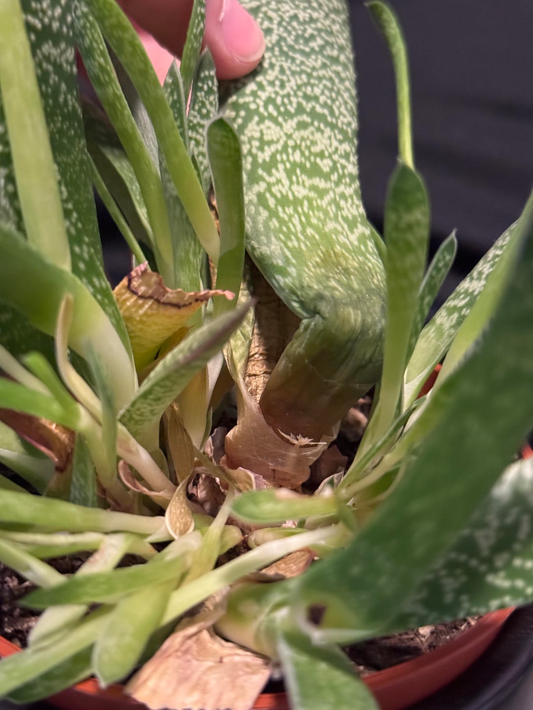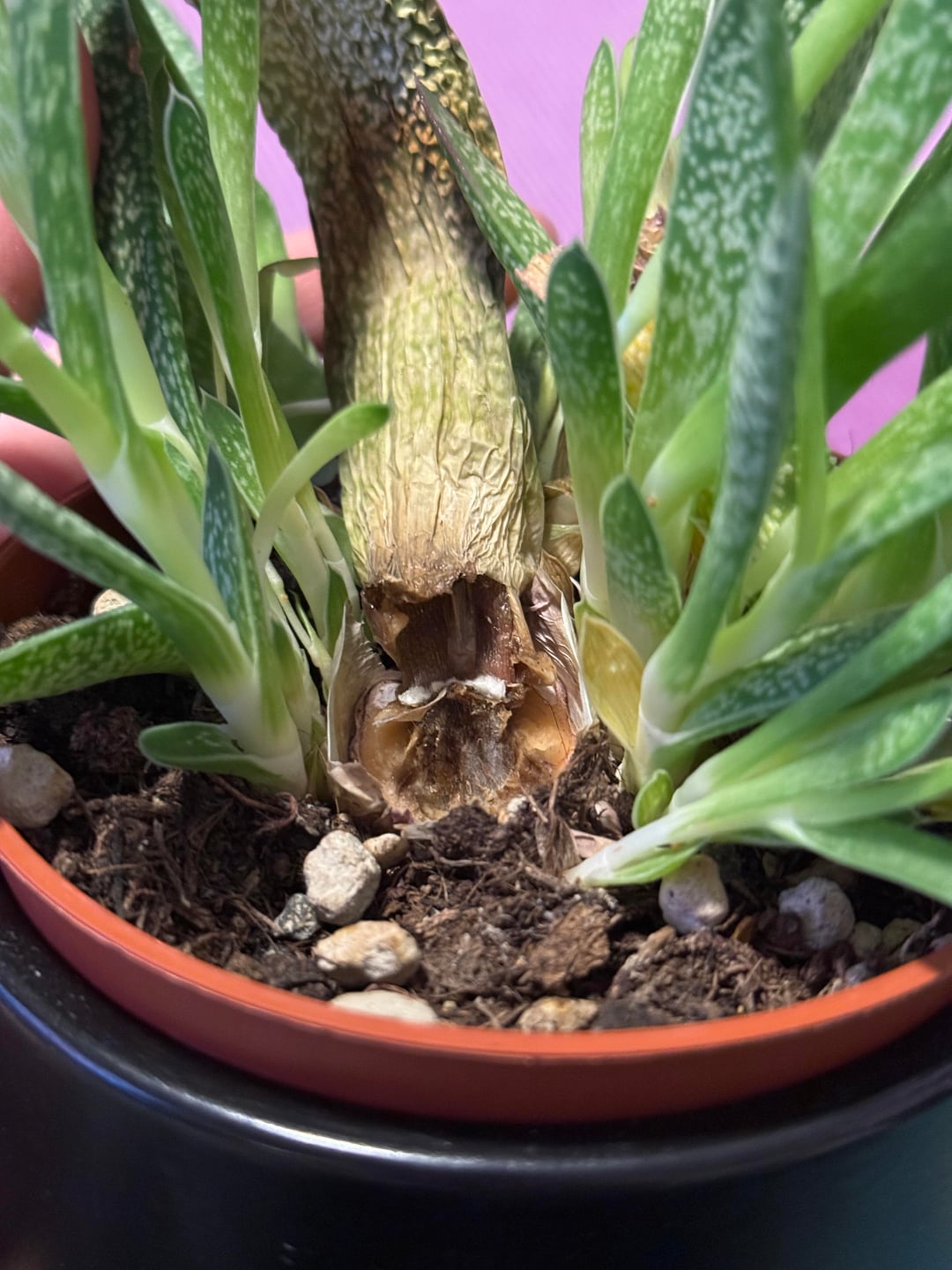 Vor etwas über einem Jahr habe ich mich dazu entschieden ein bisschen Abwechslung in unsere stachelige Familie zu bringen und habe mir eine Gasteria angeschafft. Sie war anfangs recht klein und umso stolzer war ich, dass ich anscheinend alles richtig gemacht habe und sie immer größer wurde. Allerdings passiert gerade etwas, was ich nicht verstehe und wobei ich fremde Hilfe benötige.
