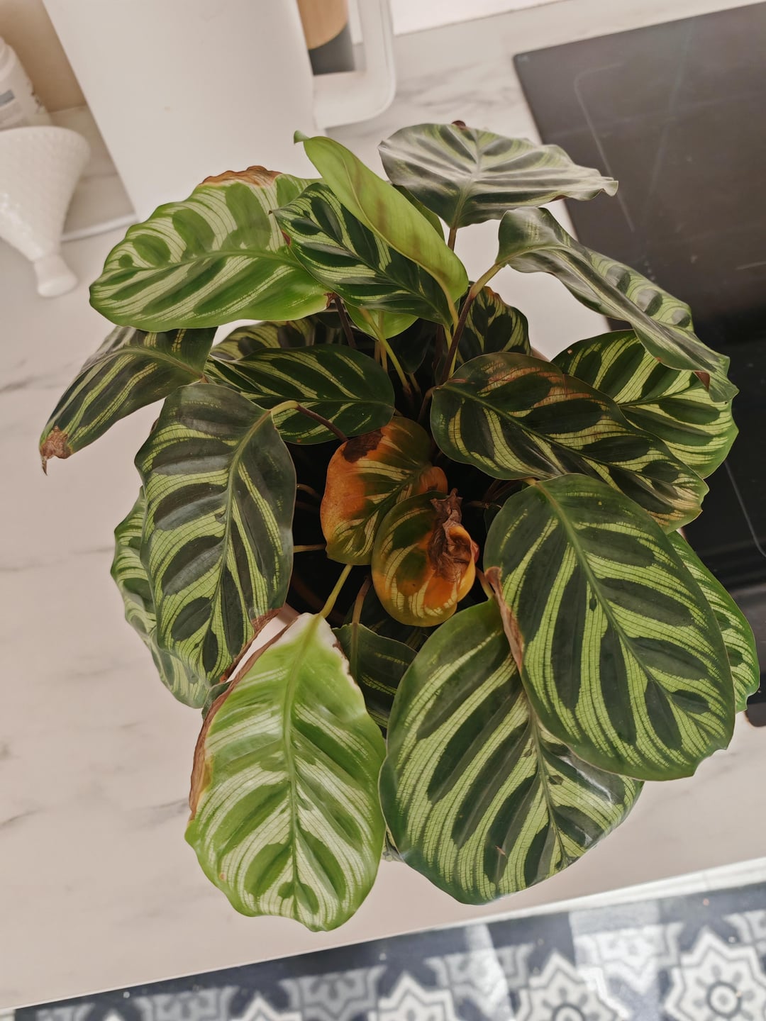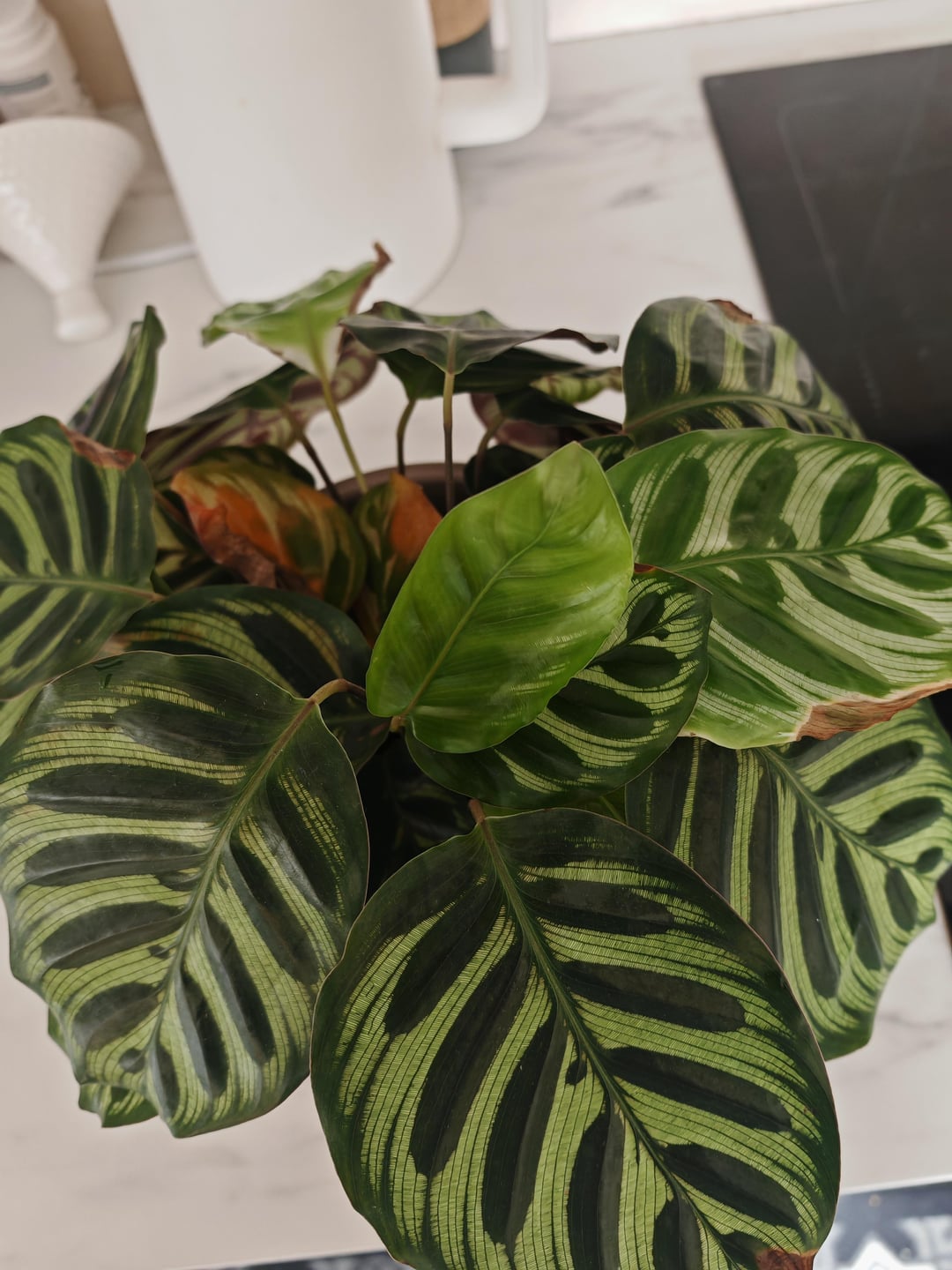 Ich habe seit einem Monat eine Calathea makoyana. Anfangs war es in einem guten Zustand, es wuchsen ziemlich viele neue Blätter, aber ich bin mir nicht sicher, warum die Seite der Blätter so gelb wird und langsam verrottet. Ich habe das Gefühl, als würde es sich von einem Blatt zum anderen ausbreiten. (Auch die neuen Blätter blieben nicht verschont).