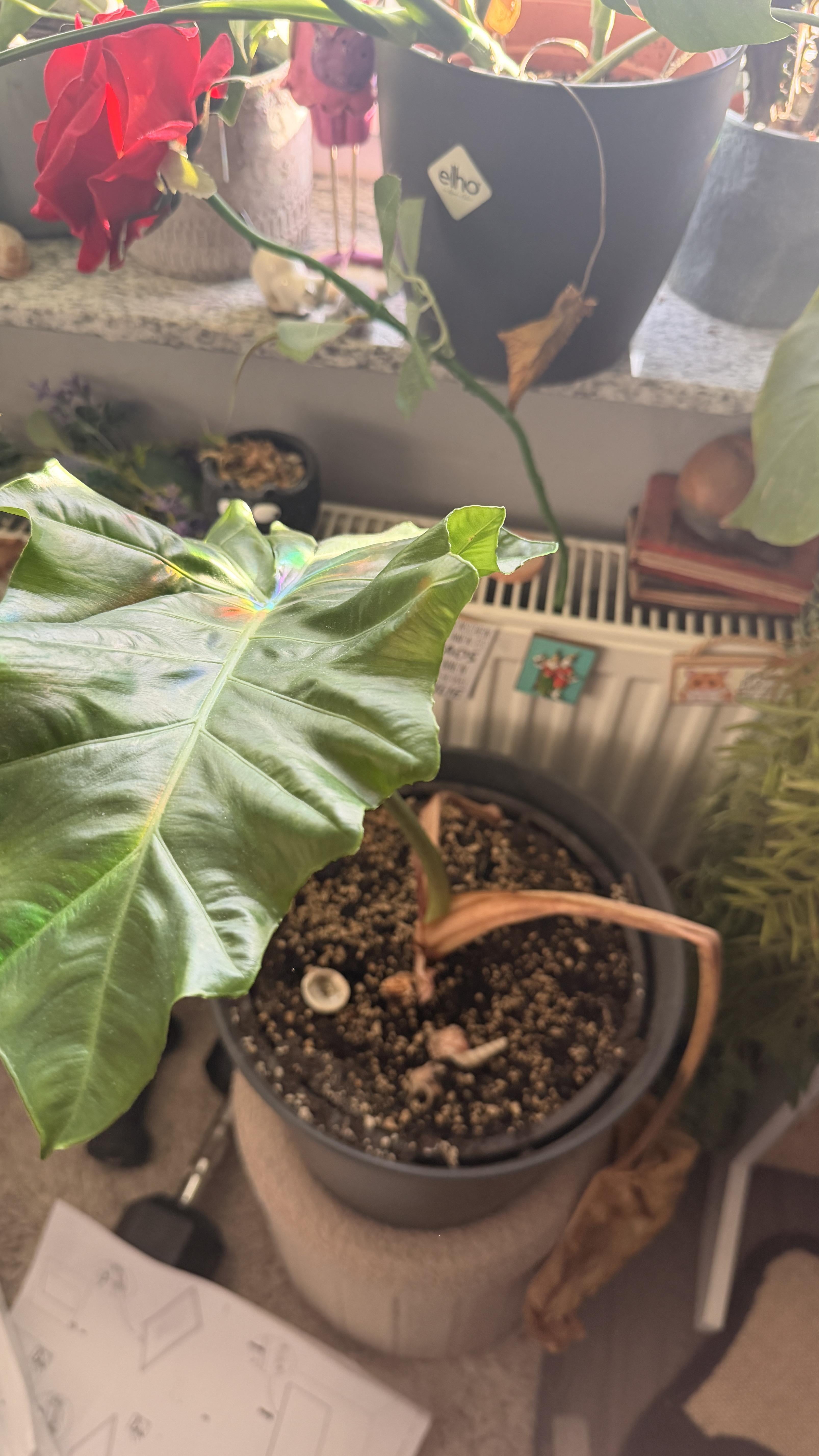 Diese Alocasia habe ich seit ca einem Jahr. Davor hatte ich auch noch eine, die hatte den selben Leidensweg. Am Anfang hatte sie Riesige Blätter und davon ganz viele doch jetzt ist nurnoch 1 übrig und dazu auch ein sehr kleines…